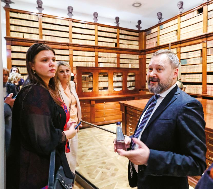 Tomasz Makowski, dyrektor Biblioteki Narodowej, pokazał naszym gościom cenne zbiory Pałacu Rzeczypospolitej.Teodor Klepczyński/PolitykaTomasz Makowski, dyrektor Biblioteki Narodowej, pokazał naszym gościom cenne zbiory Pałacu Rzeczypospolitej.
