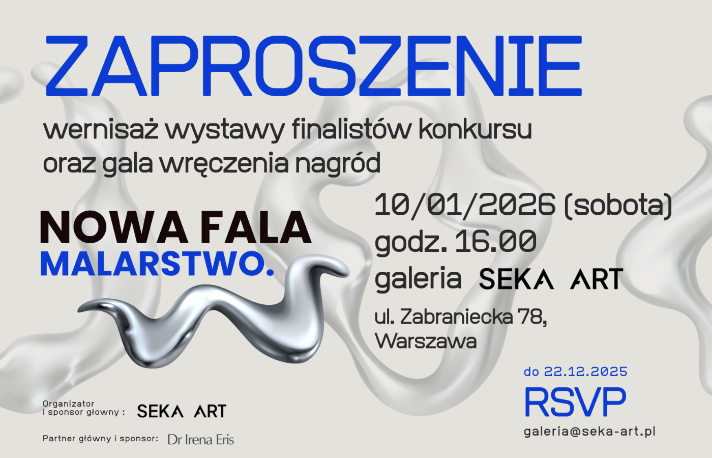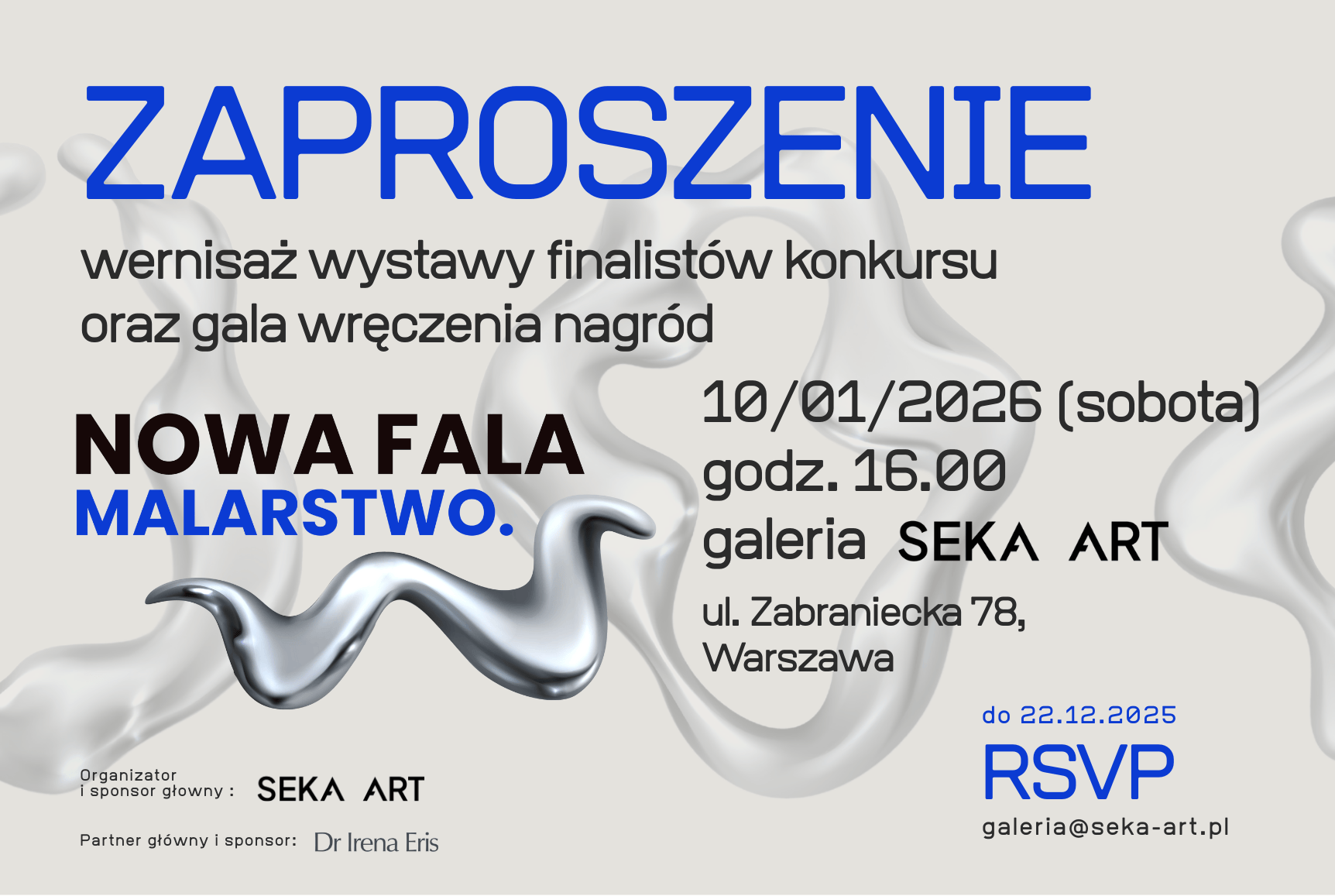 Uroczyste ogłoszenie Laureatów „Nowej Fali” odbędzie się podczas gali finałowej 10 stycznia 2026 roku, połączonej z otwarciem nowej przestrzeni wystawienniczej Galerii SEKA ART w Warszawie. To właśnie wtedy okaże się, które artystyczne osobowości najmocniej zaznaczyły swoją obecność w tegorocznej edycji Konkursu.