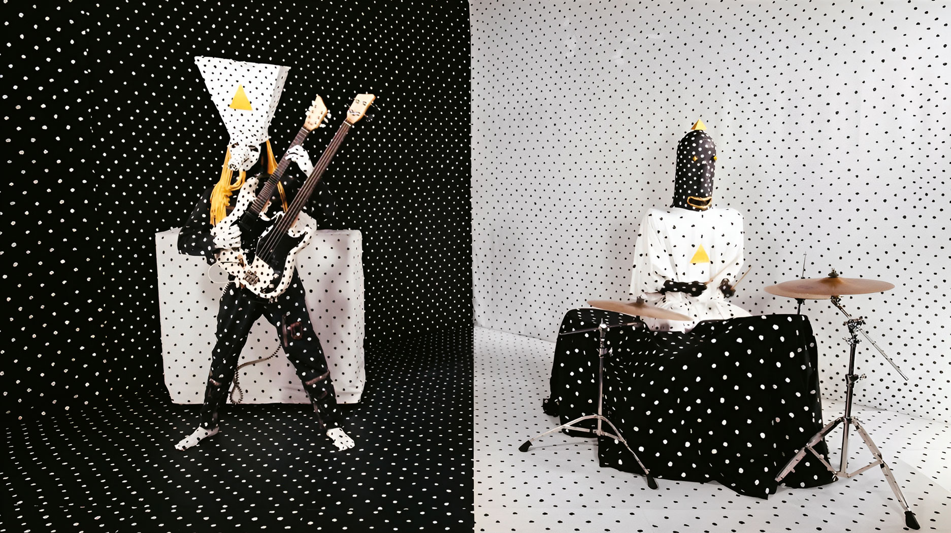Wygląd Angine de Poitrine odciąga uwagę od muzyki. Khn i Klek (to pseudonimy członków duetu) występują w strojach w kropki – białe na czarnym tle lub czarne na białym – i w maskach z długimi nosami, jak postacie z kreskówki. Khn gra na instrumencie będącym połączeniem gitary i basu, a Klek – na perkusji. Kilka miesięcy temu łatwo byłoby ich wziąć za animatorów przedszkolnych, bo w świecie muzycznym prawie nikt ich nie znał – może poza lokalną sceną rodzinnego Quebecu, francuskojęzycznej prowincji Kanady. Ale w grudniu ubiegłego roku wystąpili na francuskim festiwalu Trans Musicales de Rennes, gdzie przy okazji nagrało im sesję radio KEXP. Całość poszła w świat na YouTube, doczekała się wielomilionowej widowni, fragmenty publikowane na Instagramie i TikToku stały się wiralami, a Dławica Piersiowa (tak należałoby przełożyć nazwę zespołu na polski) – globalnym fenomenem.