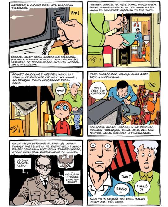 Wpływ „Epileptic” widać właśnie u Satrapi, w jej obrazie dorastania w Iranie. Dziecięce postrzeganie łączy z fantazjami, tak jak to było u Davida B. Jej bohaterka marzy, żeby być prorokinią, ma wizje, choć wychowywała się w świeckiej rodzinie. Historia rodzinna – prześladowany wujek marksista – nakłada się na historię kraju: obalenie reżimu Szacha i zwycięstwo rewolucji islamskiej.