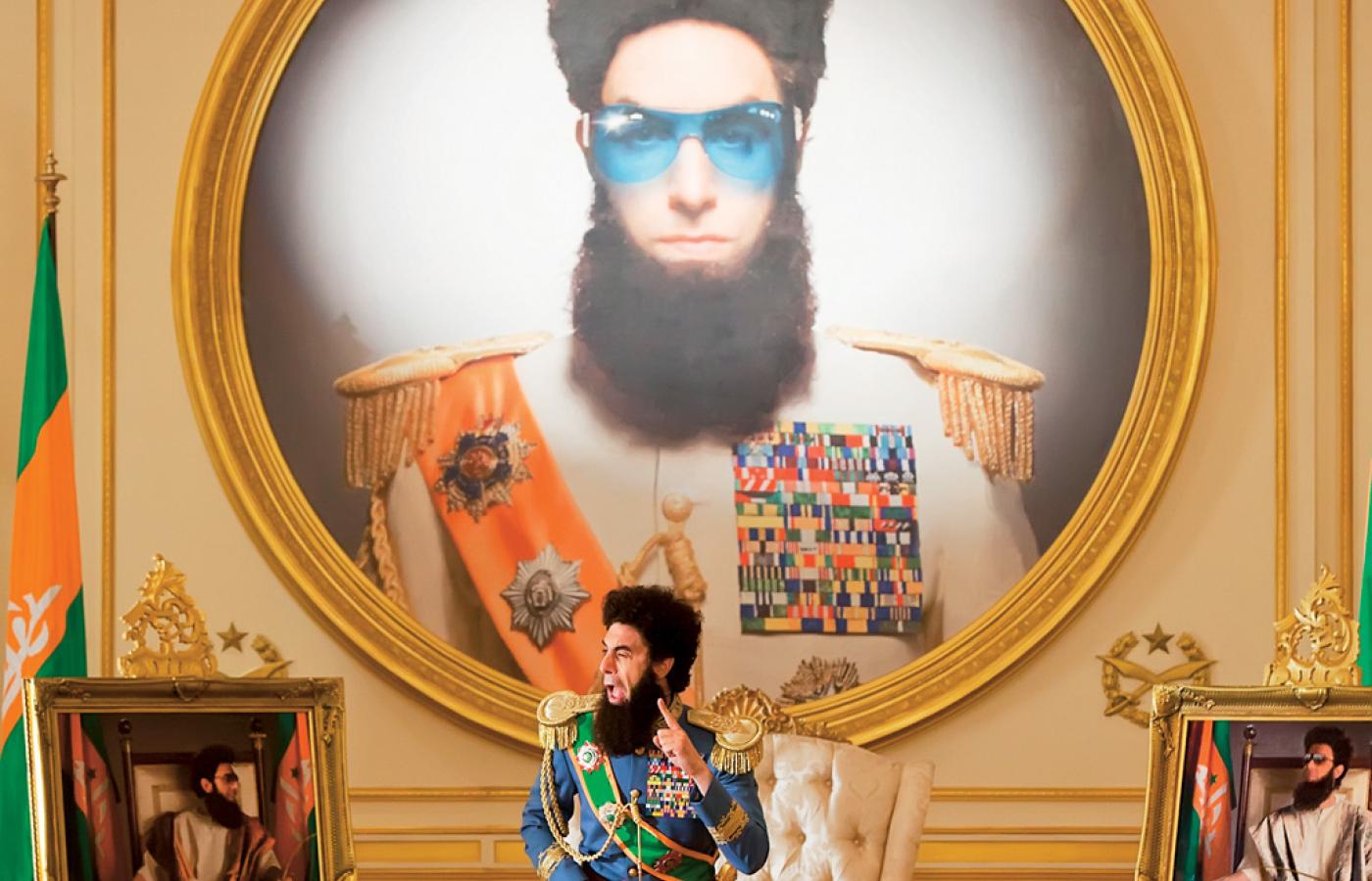 W obydwu rolach prezentuje się na ekranie Sacha Baron Cohen, niezapomniany odtwórca Borata, który tym razem parodiuje wszystkich satrapów naszych czasów razem wziętych. Ale mocno dostaje się też Ameryce. Przemówienie w ONZ o amerykańskiej demokracji to naprawdę popisowy numer, do zapamiętania. W „Dyktatorze” Cohen nabija się, jak zwykle, z poprawności politycznej, ośmiesza zwolenników zdrowej żywności, kpi ze stacji telewizyjnych, którym wydaje się, że pokazują prawdziwy obraz współczesnego świata.