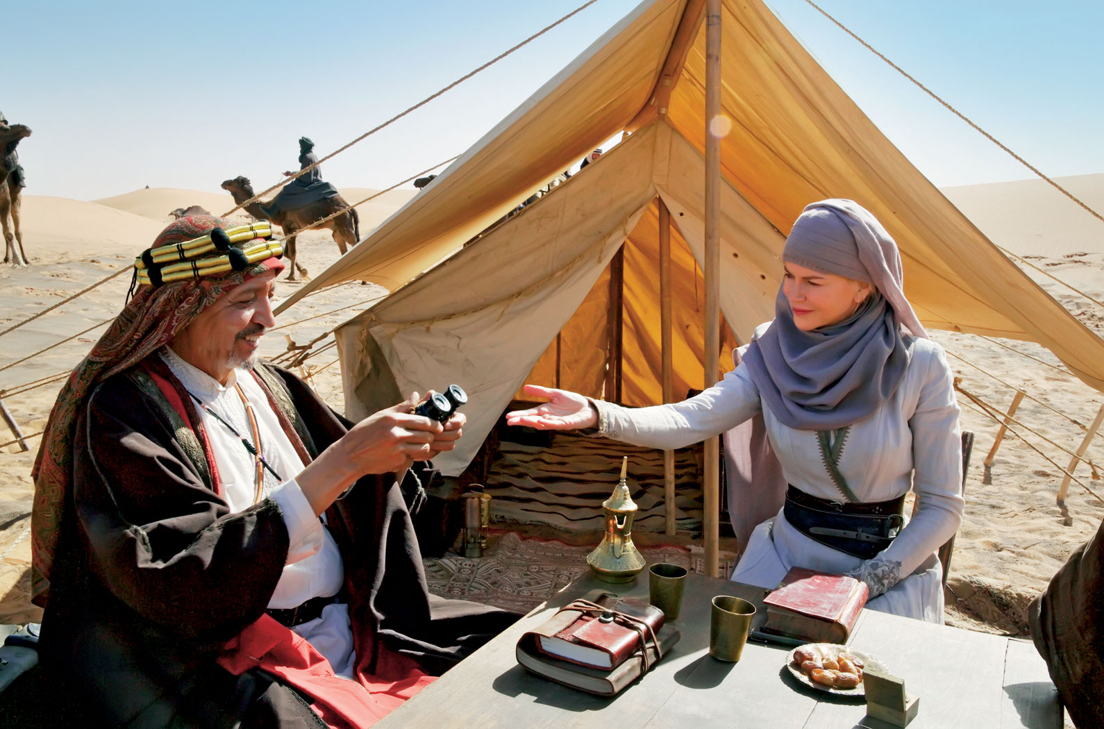 Werner Herzog ma tu zadbać o poprawienie samopoczucia lekko starzejącej się gwiazdy marzącej, by wiecznie grać niepokorne nastolatki. Ale w tej roli – hollywoodzkiego najemnika – reżyser niespecjalnie się sprawdza. Nicole Kidman (49 lat) z idealnie naciągniętą twarzą wygląda w „Królowej pustyni” nawet ponętniej niż księżna Grace Kelly. Niestety, wiarygodności nie zyskuje. Kidman wciela się w brytyjską arystokratkę Gertrudę Bell, romantycznie usposobioną poszukiwaczkę przygód. Przeżywszy nieszczęśliwą miłość, rzuca się w wir wschodnich podróży, odkrywając „wolność, godność i poezję życia” koczujących na pustyni Beduinów. Marokańskie plenery udają Kair oraz okolice Syrii i Arabii. Kamera wychwytuje pocztówkową egzotykę niczym w sandałowym kinie sprzed pół wieku.