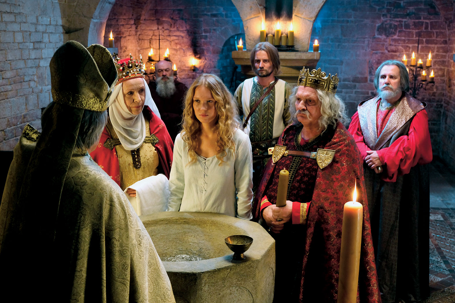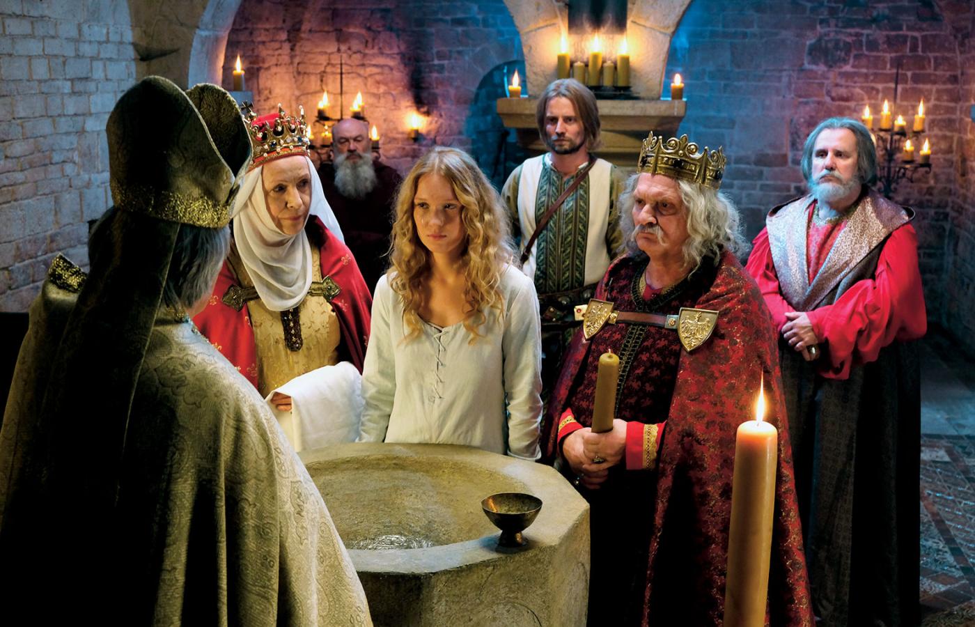 Czołówka jest mocno inspirowana tą z „Gry o tron”, tylko że zamiast pokazywanych w hicie HBO ziem, o które walczą bohaterowie, jest pokazywana z każdej strony korona z kolorowymi świecidełkami. Dalej jest podobnie. Średniowiecze przypomina to z parodii Monty Pythona z tą różnicą, że tu wszystko jest na – bardzo – serio i są prawdziwe konie. Nieporadni aktorzy w niedopasowanych perukach i kostiumach wygłaszają drewniane dialogi, ślub Kazimierza (Mateusz Król) – w przyszłości Wielkiego – to kameralna uroczystość w małej salce, wawelski dwór składa się z kilkunastu osób, szumnie zapowiadany turniej rycerski trwa na ekranie minutę i obejmuje jedno uderzenie lancą itd. O trudach jednoczenia królestwa przez Władysława Łokietka (zagubiony we własnych wąsach Wiesław Wójcik) tylko się mówi, a zamiast bitew czy negocjacji dostajemy modlitwy, msze i dyskusje o zachowywaniu postów. Zgodnie z dzisiejszą polską polityką historyczną Piastowie na ekranie wypełniają misję chrystianizacyjną. Ale, co zabawne, najbardziej katolicka z katolickich bohaterów królowa Jadwiga (Halina Łabonarska) jest też na razie największym czarnym charakterem: zupełnie nie po chrześcijańsku nie ufa nikomu i knuje, jak rozwieść syna i pozbawić korony jego litewską żonę.