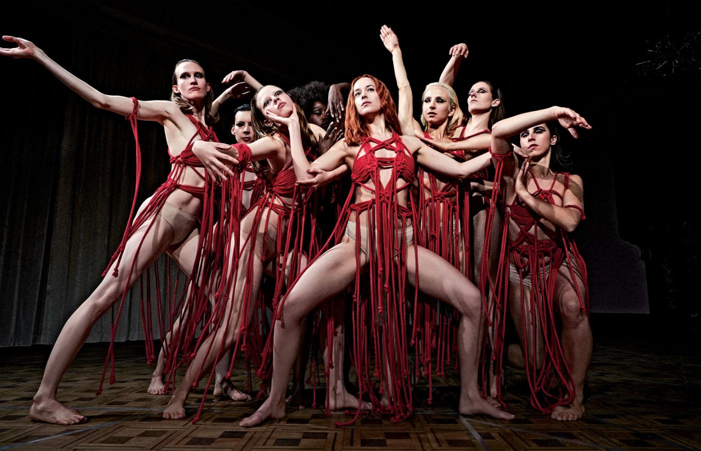 Reżyser klimatycznych, delikatnych „Tamtych dni, tamtych nocy” zrealizował nową wersję krwawego, brutalnego i dość prostego włoskiego horroru Dario Argento z lat 70. o szkole baletowej, prowadzonej w NRD przez czarownice. Wyszło dziełko przeintelektualizowane i dość pretensjonalne, z tylko jedną naprawdę straszną sceną. Zresztą zajawioną w zwiastunie: tancerka Olga (Elena Fokina) pod wpływem czaru zostaje oślepiona i zamknięta w lustrzanej sali. Kiedy piętro wyżej tańczy protagonistka Susie (Dakota Johnson), ciało Olgi łamie się i nienaturalnie skręca tak, że staje się posiniaczoną kulą, którą na srebrne mięsne haki nabijają po zajęciach satanistyczne pedagożki baletu…