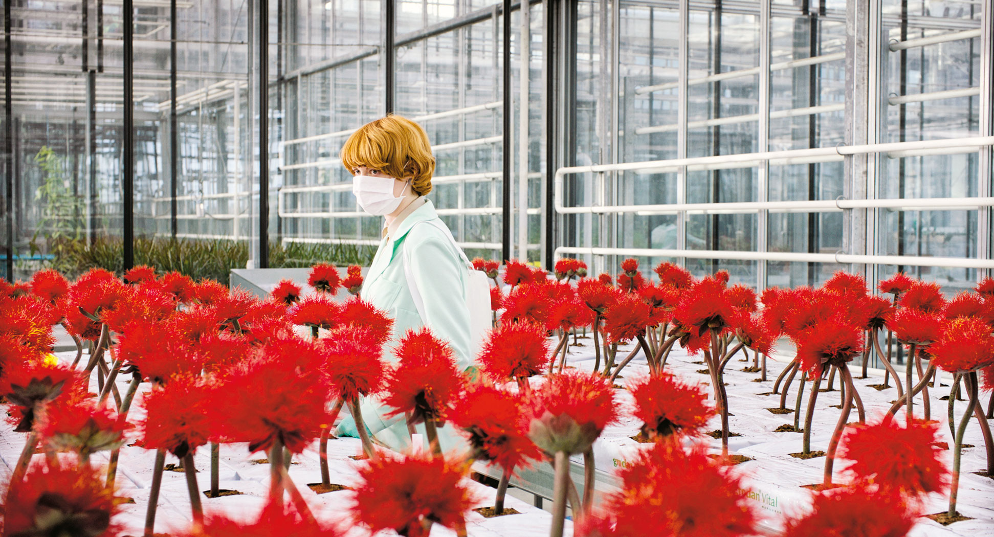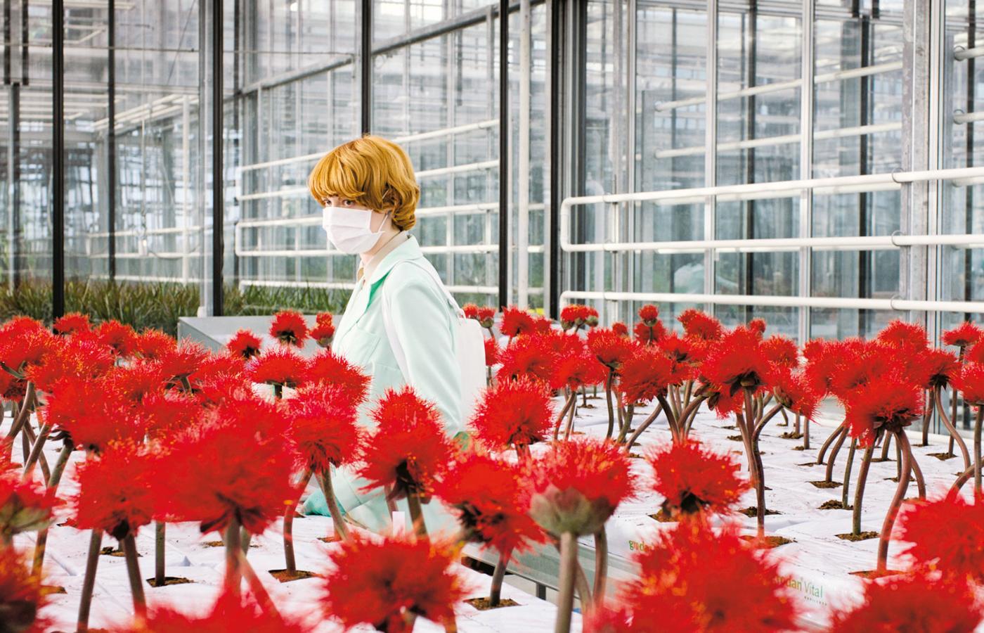 W dobie pandemii film ciekawostka. Horror biotechnologiczny z elementami dramatu rodzinnego zrealizowany przez wybitną austriacką reżyserkę Jessikę Hausner („Lourdes”, „Szalona miłość”). W „Kwiecie szczęścia” wybuch zarazy nie wywołuje globalnej paniki. Zakażonych uważa się za wyleczonych, a wirusa uznaje się za antidotum. Epidemia zostaje wywołana na skutek świadomego działania człowieka. Grupa szalonych naukowców pracuje nad wyhodowaniem wyjątkowego szczepu kwiatu, którego zapach ma poprawiać samopoczucie. Czerwony pyłek działa niczym rozweselający antydepresant, przypomina oksytocynę – hormon stymulujący ufność i przywiązanie. Coś jednak zawodzi, bo zamiast powszechnej radości następuje regres – ludzie tracą zdolność okazywania prawdziwych uczuć, zwycięża brak szczerości. Społeczeństwo zamienia się w zombie.