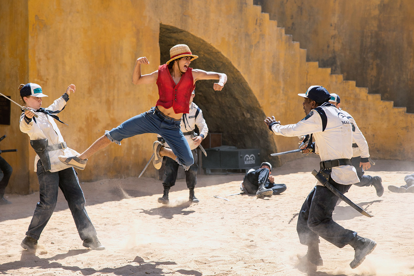 Komiksowy oryginał „One Piece” należy (obok „Naruto” i „Bleach”) do „wielkiej trójcy shonen manga”, gatunku kierowanego do dorastających chłopaków, a co za tym idzie – pełnego przygód, fantazji i nauczek życiowych o sile przyjaźni, wytrwałości i zwycięstwie. Jest więc wątek awanturniczy – poszukiwanie tytułowego pirackiego skarbu, który jest obsesją młodzieńca zwanego Monkey D. Luffy. Postanawia on zebrać załogę (przyjaźń!), odnaleźć skarb (wytrwałość!) i dzięki temu zostać królem piratów (zwycięstwo!). Światu z mangi daleko do „Piratów z Karaibów”, to fantastyczna kraina, w której mieszają się style i epoki. Twórcy adaptacji nie próbowali na siłę jej urealniać, wręcz przeciwnie, zachowali wszelkie dziwactwa (telefony-ślimaki czy szermierz z kataną w zębach to najmniejsze z nich), a także mieszankę humoru i melodramatu.