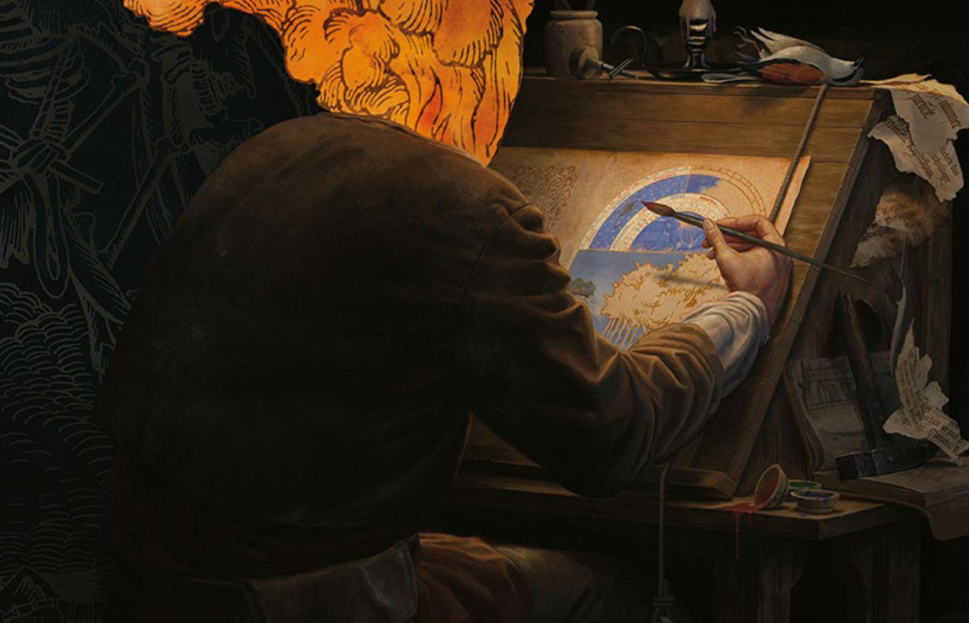 Rok 1518, Alpy Bawarskie. Adreas Maler, czeladnik w skryptorium benedyktyńskiego opactwa, z benedyktyńską cierpliwością przepisuje manuskrypty, zdobiąc je barwnymi iluminacjami. Gdy popełnione zostanie morderstwo, rozpocznie śledztwo, by oczyścić z zarzutów przyjaciela. Nawiązanie do „Imienia róży” Eco to tylko jeden z licznych tropów kulturowych (jedna ze scen parafrazuje „Statek głupców” Boscha w drzeworytowej interpretacji Dürera), kryminalna intryga jest dla autora Josha Sawyera pretekstowym zawiązaniem opowieści rozpisanej na dekady.