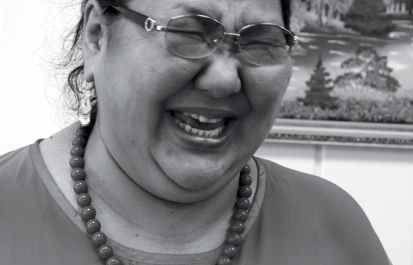 Nieskończenie długim charknięciem zaciąga gila do gardła. Co z tym zrobi? – zastanawiam się. Wypluje do popielnicy, fikusa, do kosza na śmieci? A może połknie? Ediij Dora wstaje i rozgląda się, pokazuje coś na migi, więc nasza tłumaczka (duchy pozwalają Dorze mówić tylko po jakucku) podaje jej usłużnie kartkę papieru. Nauczycielka robi rożek i wypluwa do niego wielkiego, zielonego gluta, który na długo jak gorący sopel zawisa u jej dużych warg.