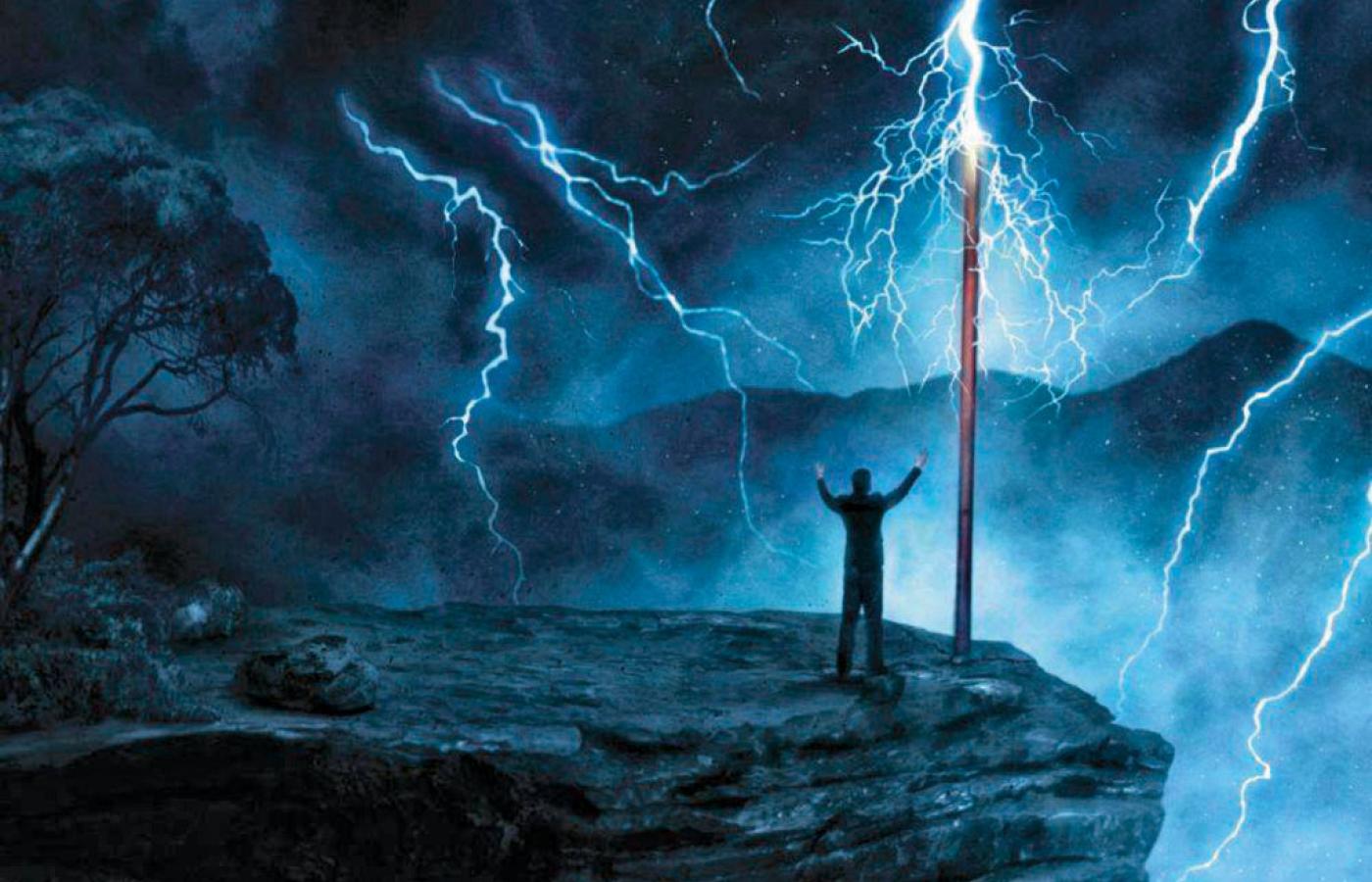 – Tak. W tamtym czasie nosiłem pseudonim Mr. Electrico na cześć Raya Bradbury’ego, lecz wątpię, czy któryś ćwok się tego domyślił. Chociaż wynalazłem już prymitywną wersję projektora, którego dziś używam, do głowy mi nie przyszło, żeby wykorzystać go w moim show. Przeważnie posługiwałem się transformatorem Tesli i generatorem iskrowym, który nazywałem Drabiną Jakuba. Małą Drabinę Jakuba pokazałem wam, kiedy byłem pastorem w Harlow, Jamie. Zmieniałem kolor iskier przy użyciu substancji chemicznych. Pamiętasz?