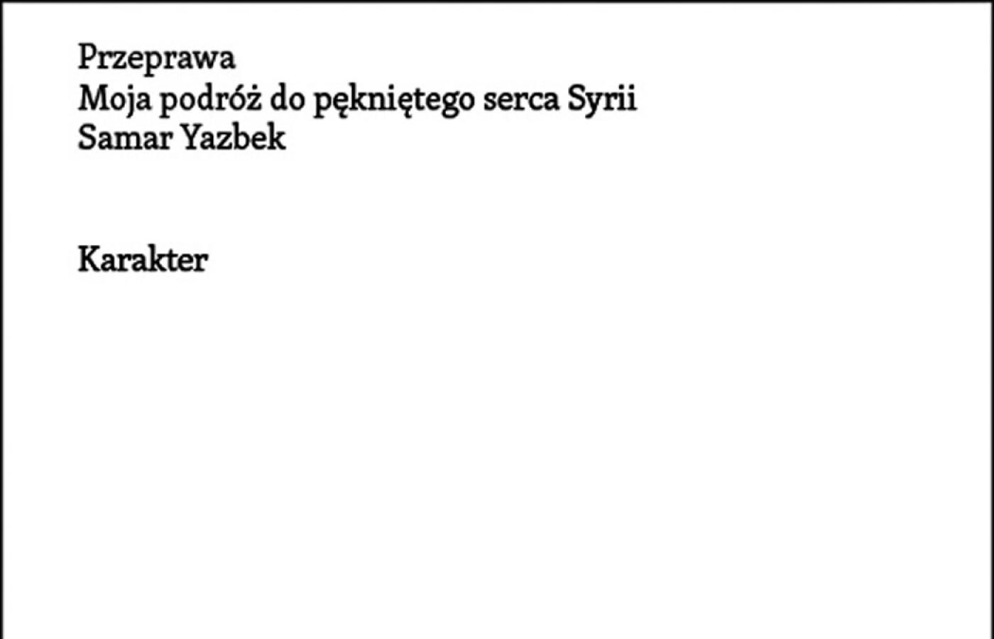 Samar Yazbek, Przeprawa. Moja podróż do pękniętego serca Syrii, przeł. Urszula Gardner, Karakter, Kraków 2016, s. 336