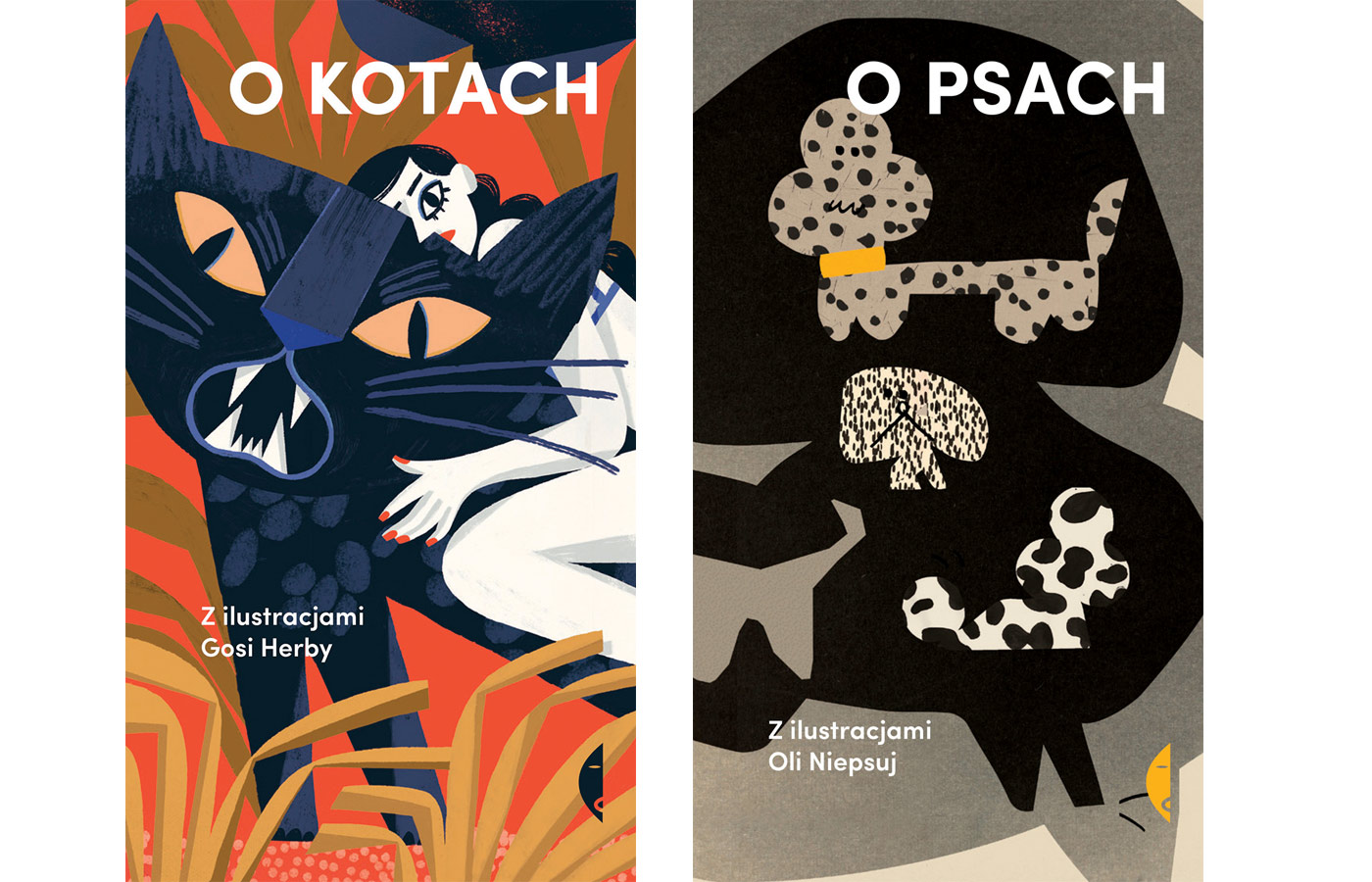 Koty to jest fikcja, psy – nos blisko ziemi; koty – harce wyobraźni, psy – refleksyjna drzemka. Tak to się przynajmniej układa w dwóch niewielkich zbiorach opowiadań. W tomie psim – z ilustracjami Oli Niepsuj – Michał Cichy, Wioletta Grzegorzewska, Andrzej Stasiuk i Krzysztof Varga dają się prowadzić swoim kundlom (bo w większości to właśnie kundle, nie ma w tym przypadku) ścieżkami wspomnień. W tomie kocim – z rysunkami Gosi Herby – panuje większa różnorodność: Stefan Chwin opowiada o wojennym mezaliansie w Warszawie, w której ludzi zastąpiły koty, Małgorzata Rejmer – o małżeństwie związanym kocimi decyzjami, a Piotr Siemion tworzy retrofuturystyczną makabreskę.
