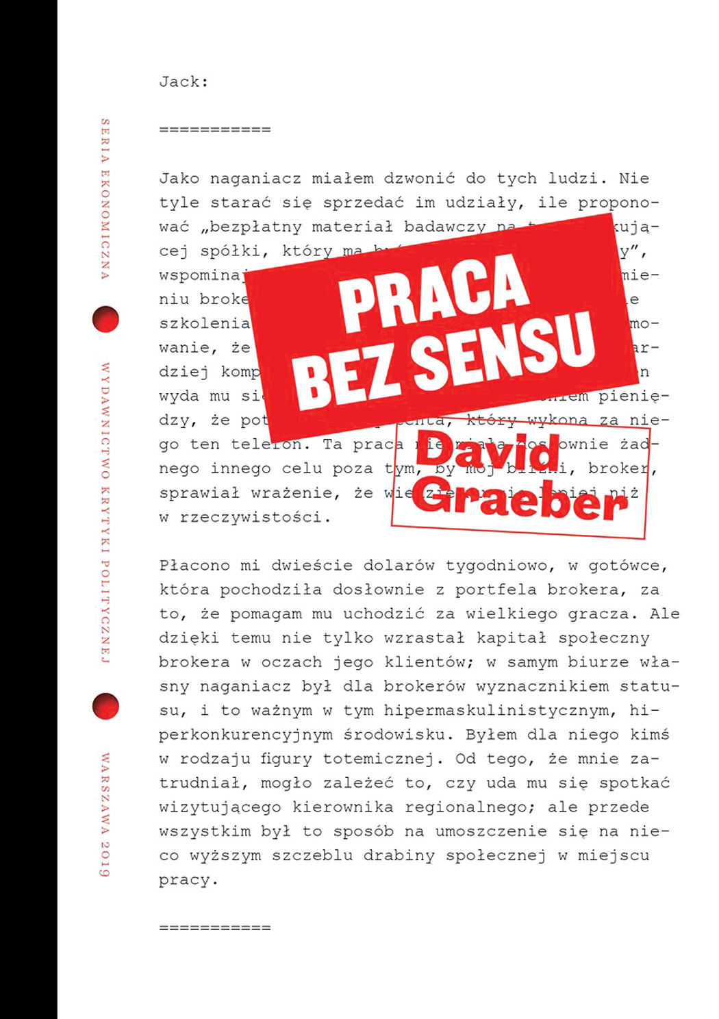 David Graeber, Praca bez sensu. Teoria, przeł. Mikołaj Denderski, Wydawnictwo Krytyki Politycznej, Warszawa 2019, s. 448