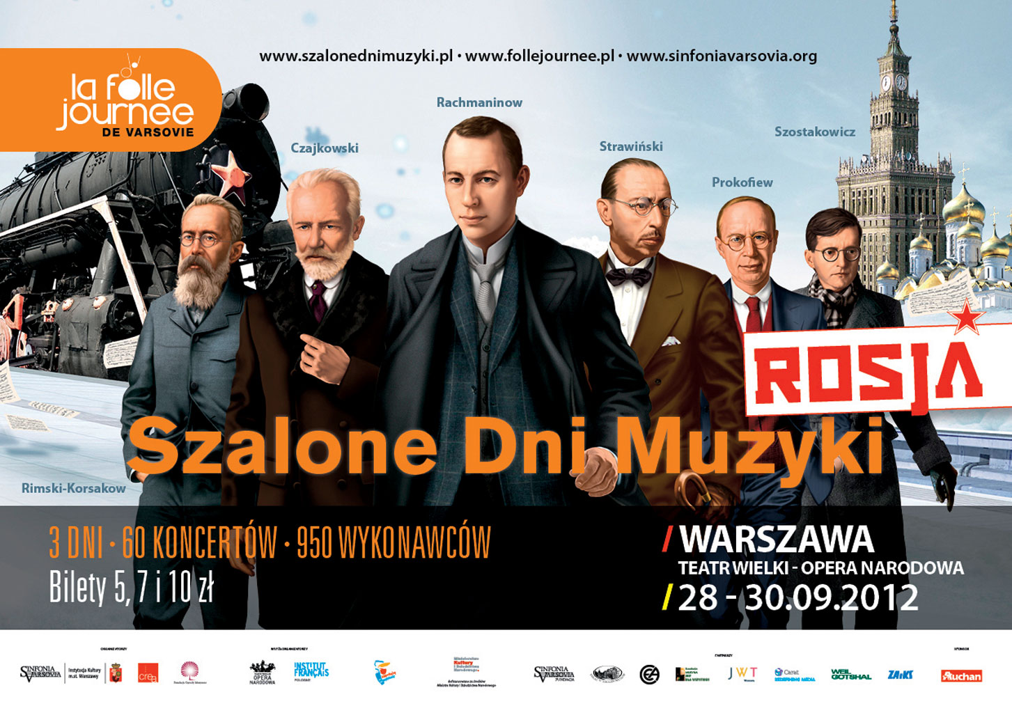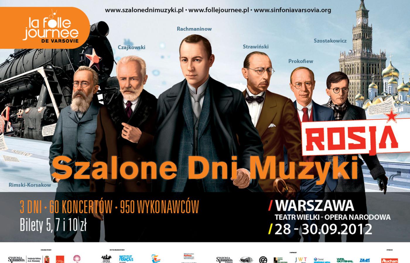 Muzyka rozlewna, wpadająca w ucho, więc świetna także dla początkujących melomanów. A Szalone Dni Muzyki są skierowane w dużym stopniu właśnie do nich, choć i wyrafinowany słuchacz może mieć z nich przyjemność (orkiestry: Sinfonia Varsovia, która jest inicjatorem festiwalu w Warszawie, a także Filharmonia Narodowa, Polska Orkiestra Kameralna, Opera Narodowa, Sinfonia Iuventus, a nawet Rosyjska Orkiestra Rogów; soliści: m.in. Nikolai Lugansky, Alexander Kniazev, Andrei Korobeinikov, Bartosz Koziak). Festiwal jest pomyślany tak, by nie odstraszać ani nie nużyć: koncerty do godziny, ceny biletów: 5–10 zł. Sale teatru dostają na te trzy dni nowych patronów: Puszkina, Dostojewskiego, Czechowa, Tołstoja i Gogola. W sobotę i niedzielę po trzy koncerty z cyklu Smykofonia, przeznaczonego dla maluszków i ich rodziców.