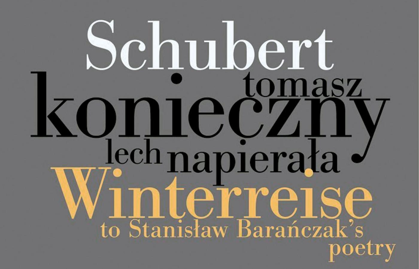 To bardzo ryzykowny pomysł: wykonać cykl pieśni Franza Schuberta nie w oryginale, lecz z napisanymi do jego melodii wierszami Stanisława Barańczaka, które – z wyjątkiem piątego wiersza cyklu, „Lipy” – nie mają nic wspólnego z poezją Wilhelma Müllera, którą Schubert umuzycznił. Jedno może: że i tu, i tu pojawia się śnieg, krajobraz zimowy. Jednak w oryginale mamy podmiot liryczny – wędrującego w pustkę mężczyznę złamanego zawodem miłosnym, a u Barańczaka – cykl gorzkich refleksji nad światem i życiem współczesnego człowieka.