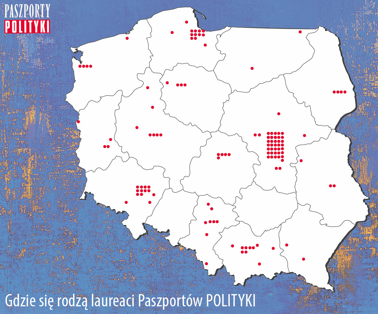Podsumowując: 36 nagrodzonych Paszportami POLITYKI (ok. 25 proc.) urodziło się w Warszawie, po 10 osób (ok. 7 proc.) – w Gdańsku i we Wrocławiu.