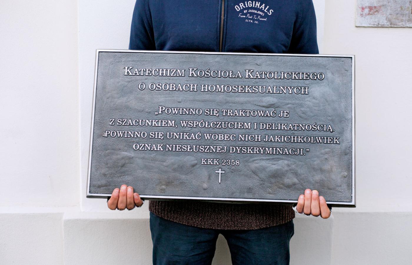…z fragmentem katechizmu Kościoła katolickiego o potrzebie traktowania osób homoseksualnych z szacunkiem i delikatnością. Następnie stałem z tą tablicą trzymaną w rękach przez kilka godzin przed wejściem do kościoła dominikanów na warszawskiej Starówce.