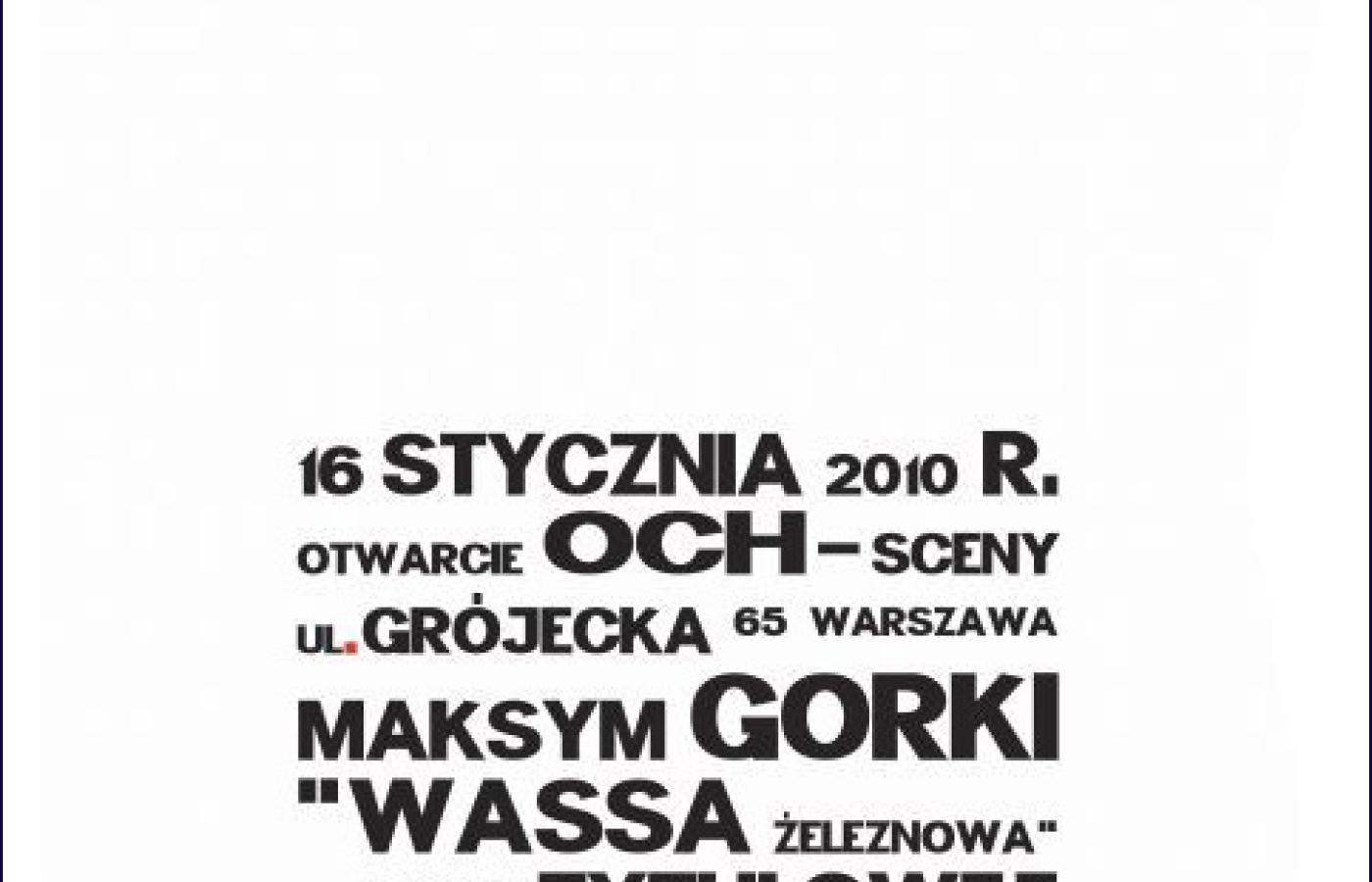 Na filmie dokumentalnym, wyświetlanym przed spektaklami „Wassy Żeleznowej” Maksyma Gorkiego w reż. Waldemara Raźniaka w Och-Teatrze w Warszawie, buduje się teatr (w dawnym kinie Ochota), aktorzy próbują sceny, przymierzają kostiumy, a nawet ćwiczą układ walki. Ogólna radość spod znaku: tworzymy sztukę. A potem zaczyna się przedstawienie i okazuje się, że żadna sztuka nie powstała.