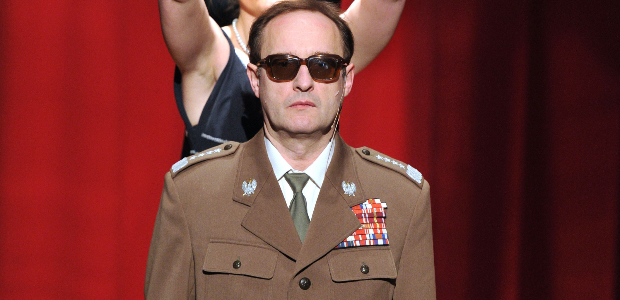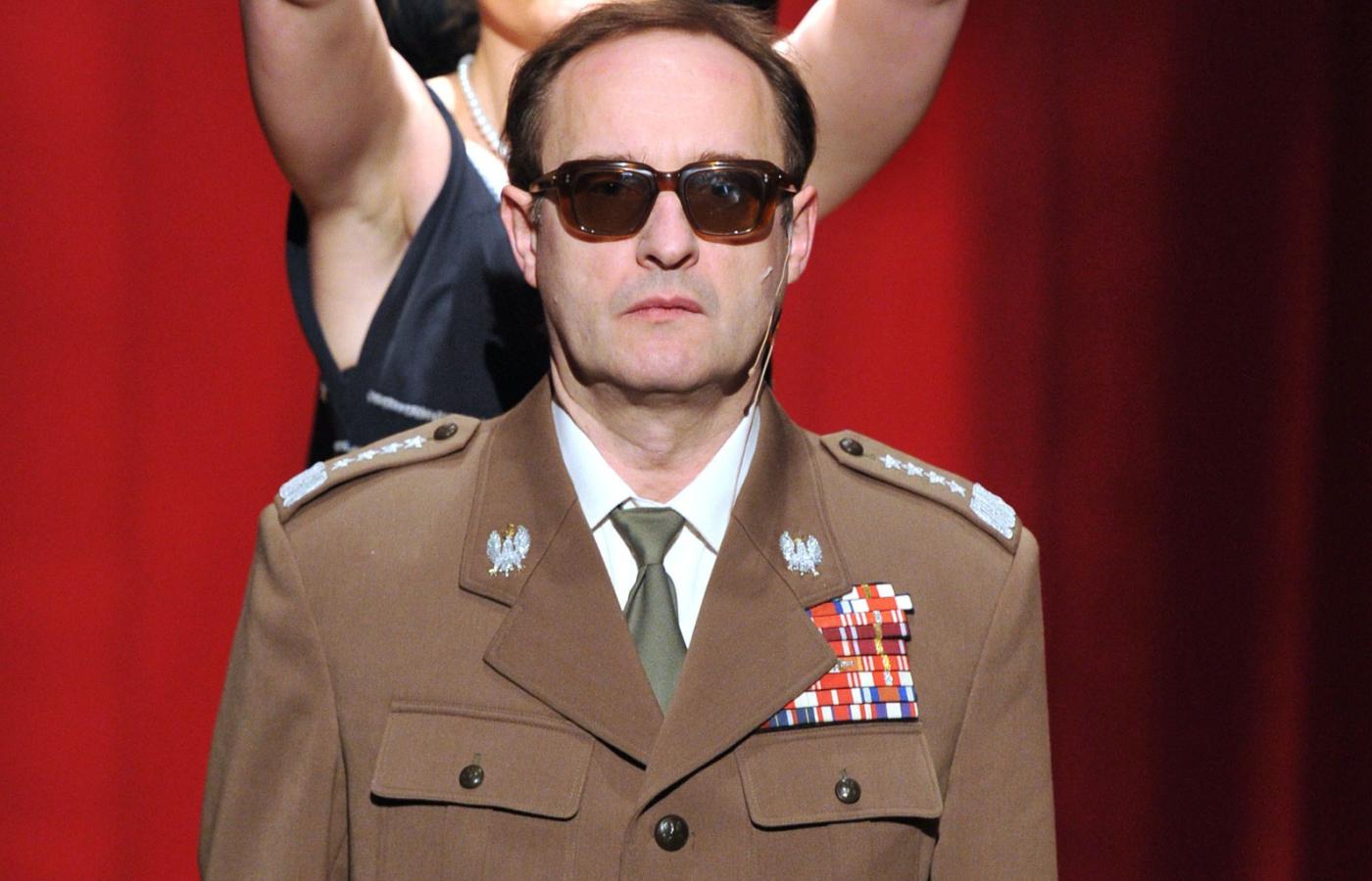 W przedstawieniu nie pada nazwisko głównego bohatera, lecz nie mamy najmniejszych wątpliwości, kogo odtwarza Marek Kalita, w generalskim mundurze, w ciemnych okularach, recytujący w charakterystyczny sposób zwięzłe, rwane kwestie. Dodajmy od razu, że z arcytrudnego zadania aktor (zarazem współreżyser przedstawienia) wywiązuje się bardzo dobrze. Z całą resztą są jednak pewne kłopoty, czego dowodem pierwsze recenzje, zarówno te pochwalne, jak i masakrujące „Generała”. Jeżeli sztukę Jarosława Jakubowskiego potraktuje się jako dramat realistyczny, to rzeczywiście trudno nie zauważyć, że grzeszy ona trywialnością. Niezrealizowana seksualnie żona generała, córka wegetarianka, która nie kryje lesbijskich zainteresowań, operetkowy sekretarz lizus, wreszcie karykaturalni byli towarzysze broni, Czesław i Florian (w których trudno nie rozpoznać byłych szefów siłowych ministerstw z czasów stanu wojennego). Kiedy popijają gorzałę słuchając „Jarzębiny czerwonej”, publiczność się śmieje jak na komedii.