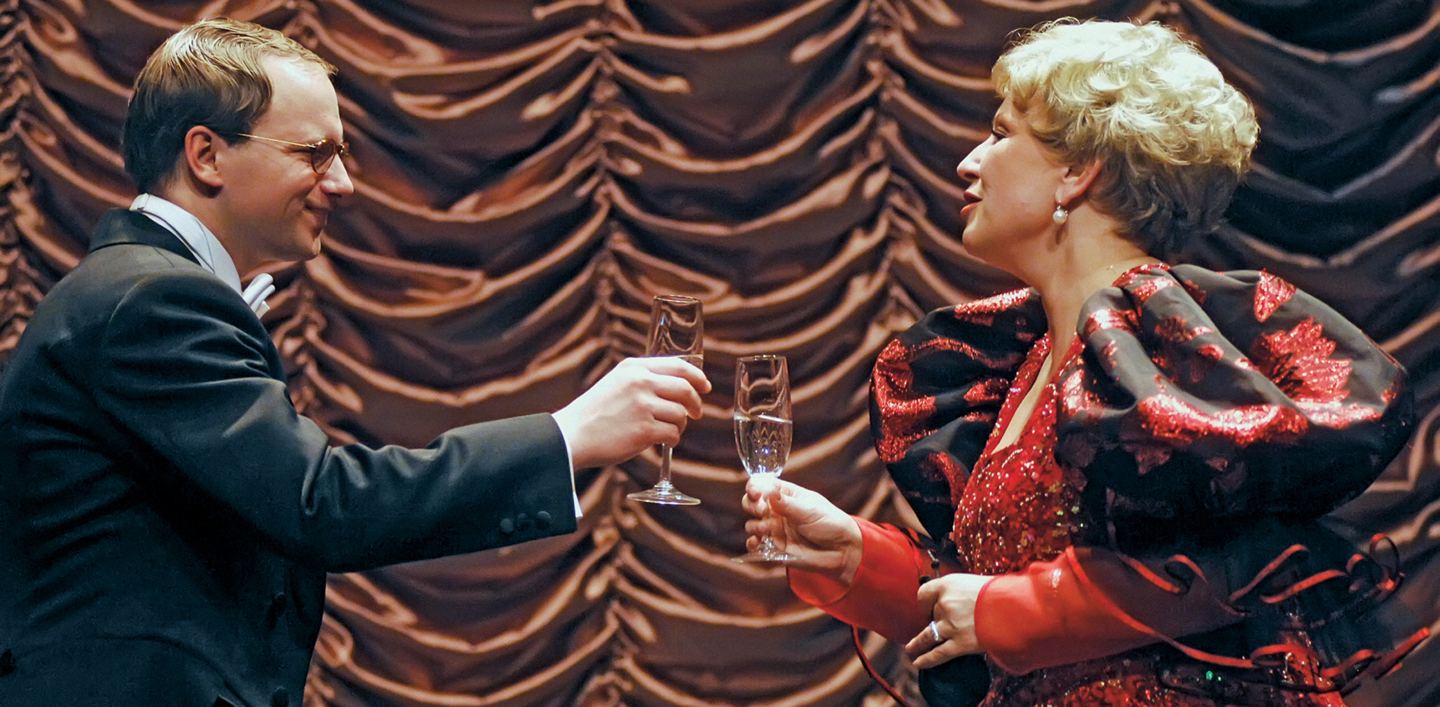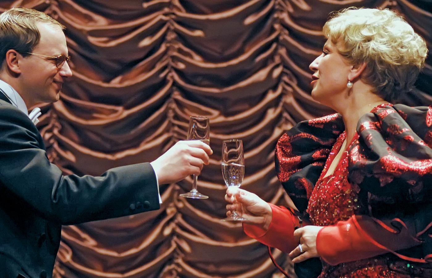 Janda gra swoją bohaterkę z lekkim dystansem, ale też z wielką czułością, jakby przeglądała się w niej jak w krzywym zwierciadle. Jest przecież aktorką tyleż uwielbianą przez widzów – kultową, co nie zawsze docenianą przez krytykę. No i podobnie jak bohaterka spełniła swoje marzenie wbrew przeciwnościom losu – w końcu gra Madame Jenkins we własnym teatrze. Partnerują jej: Krystyna Tkacz, Maciej Stuhr i Wiktor Zborowski. Podczas transmisji kamera będzie towarzyszyć aktorom także podczas przygotowań do ról w garderobach.