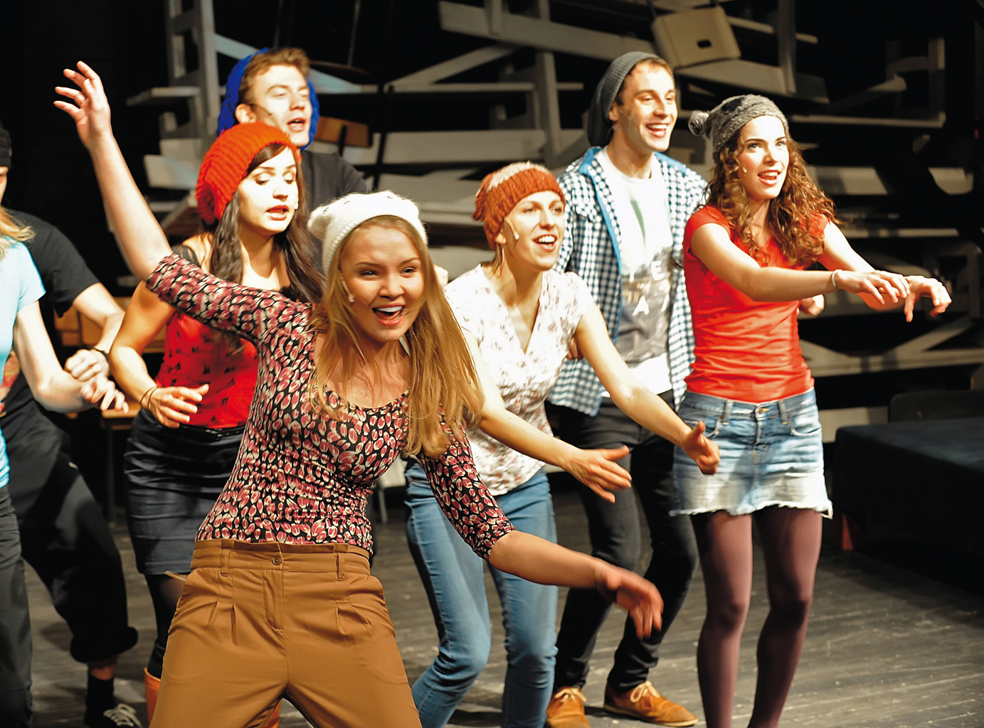 „MP4” – spektakl dyplomowy studentów warszawskiej Akademii Teatralnej – to piosenki zarówno bardzo znane („Czy te oczy mogą kłamać”, „Gigi L’Amoroso”, „Hop szklankę piwa”, „Milord”, „Nie opuszczaj mnie”), jak i mniej popularne („Balonik” Okudżawy, „Femme fatale” Kofty, „Sposób na kobiety” Federowicza). Jest o miłości i o pieniądzach, o nadziejach i niespełnieniu, o pragnieniach i lęku. Zaś cudownie surrealistyczny „Murzyn” – ze słowami Jana Brzechwy i muzyką Africa Simone’a – w genialnym wykonaniu Pauliny Korthals i tańczącego chórku reszty zespołu – rozbawił nawet siedzącego na widowni Andrzeja Poniedzielskiego. Reżyserujący całość Mariusz Benoit postawił na osobowości młodych aktorów i wygrał: słuchając ich i oglądając, ma się ochotę posłuchać ich i obejrzeć znowu.