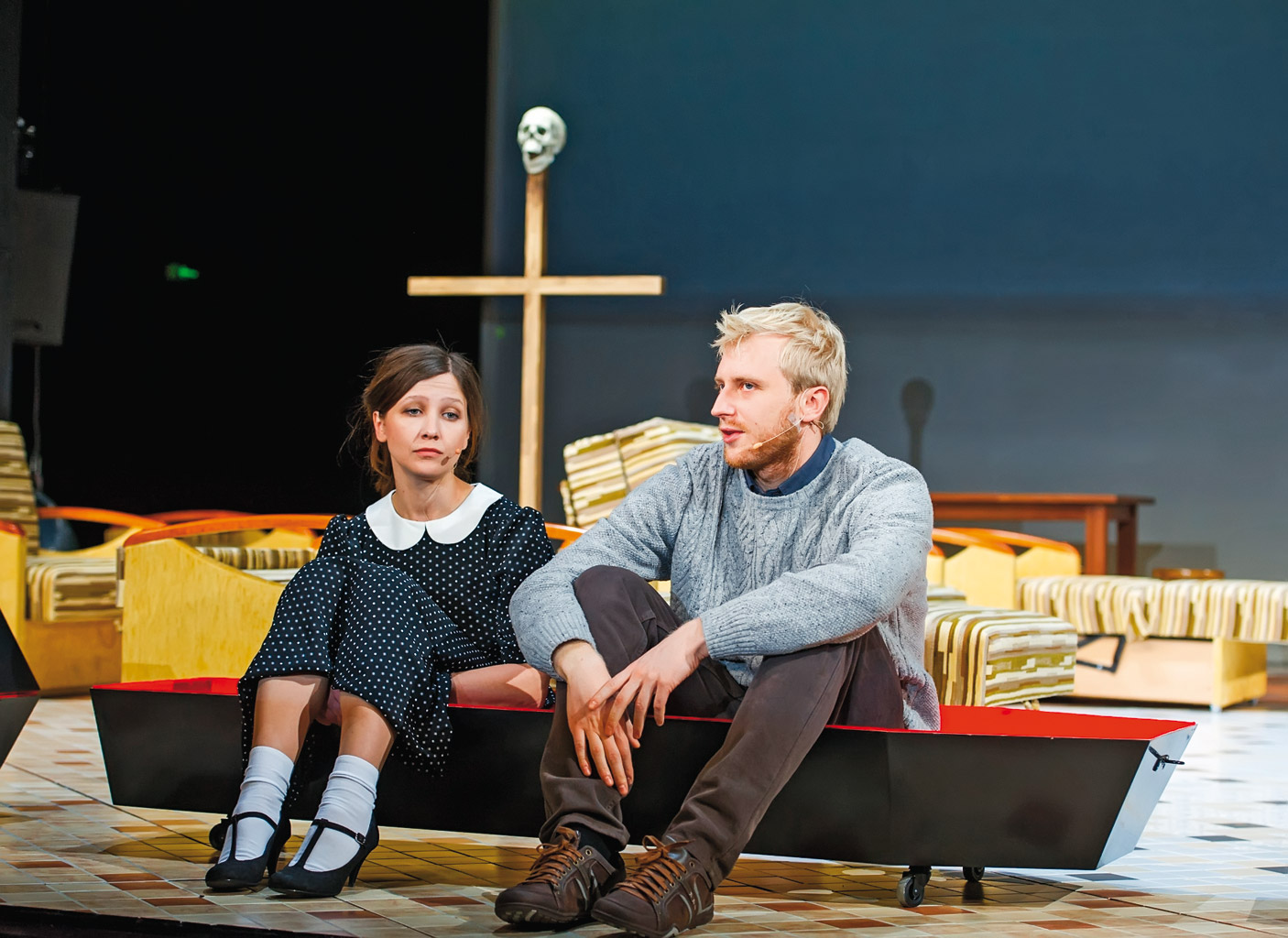 Wszystko to w spektaklu Konstantina Bogomołowa jest, ale w tle, bo na pierwszy plan reżyser wysunął trop biblijny: krzyże, czytanie Księgi oraz tytuły dwóch części przedstawienia, „Stary Testament” i „Nowy Testament”, każą w opowieści o sekcie wybranych zobaczyć odniesienia do chrześcijaństwa. Taka interpretacja zdeterminowała grę aktorską. Danuta Stenka, Mariusz Bonaszewski, Dobromir Dymecki, Jerzy Radziwiłowicz i inni dostali przykazanie, by nie wcielać się w bohaterów, tylko przekazać ich historie jak słowa swoistej ewangelii. Wyszło beznamiętnie i monotonnie.
