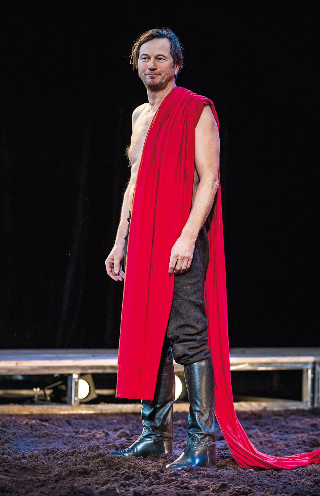 Tytułowego bohatera gra Piotr Cyrwus, który w Teatrze Polskim z poświęceniem próbuje zerwać maskę poczciwego Rysia z „Klanu”. Jego Bolesław jest faktycznie śmiały: samiec alfa, z gołym torsem i rozwichrzonym włosem cedzi słowa o zdradzie i zemście, gładząc po udach oddające mu się w rozgorączkowaniu niewiasty: pogańską kochankę, chrześcijańską żonę oraz żony rycerzy, których za zdradę skazał na śmierć. W obronie tych ostatnich stanął krakowski biskup Stanisław (młody i natchniony Krystian Modzelewski) i tak zaczął się konflikt władzy świeckiej i duchowej, który ponoć trwa w Polsce od XI w. do dziś.