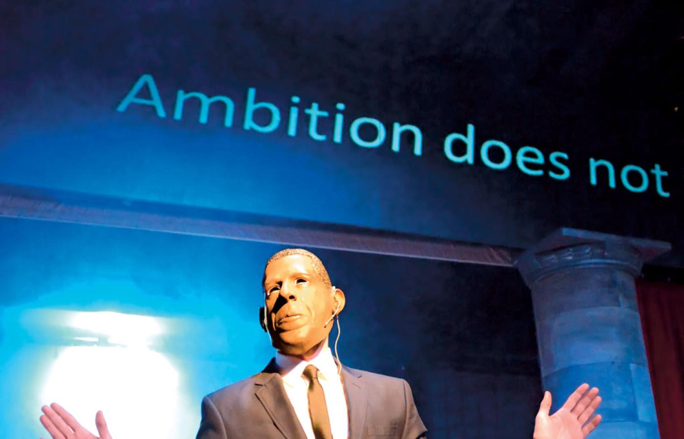 Historia Toma Ripleya, który rusza z misją sprowadzenia do Stanów bawiącego we Włoszech syna bogatego biznesmena, po czym przejmuje jego tożsamość, miała najprawdopodobniej posłużyć Radosławowi Rychcikowi jako materiał do rozważań nad dzisiejszymi metodami autokreacji, współczesnym żonglowaniem tożsamościami. Zaczyna się intrygująco – Ripley (grający psychopatę Marcin Bosak) w masce prezydenta Obamy drobiazgowo analizuje swój wygląd i cechy charakteru, narzucając światu interpretację swojej osoby. Potem jednak spektakl zmienia się w żonglerkę skojarzeniami. Jedne sceny nawiązują do estetyki kina noir, inne do klasyki filmowych horrorów. Ripley w mundurze pilota otoczony wianuszkiem (azjatyckich!) stewardes to z kolei cytat ze „Złap mnie, jeśli potrafisz” Spielberga z Leonardo DiCaprio w roli oszusta kradnącego tożsamości innych, pijatyki w barze mają odnosić do ekranizacji „Pod wulkanem” Lowry’ego itd. Rychcik kontynuuje podążanie tropem amerykańskiej popkultury, odniesień filmowych i serialowych, które zbudowały nowy, nieoczekiwany i ciekawy kontekst dla jego „Dziadów” z poznańskiego Nowego. Tam jednak trzonem był sens i znaczenie płynące z dzieła Mickiewicza, które cytaty z popkultury wzmacniały, zaś w „Utalentowanym panu Ripleyu” z warszawskiego Studia zostały tylko odniesienia, sens całości staje się tak nieuchwytny jak prawdziwa osobowość Ripleya.