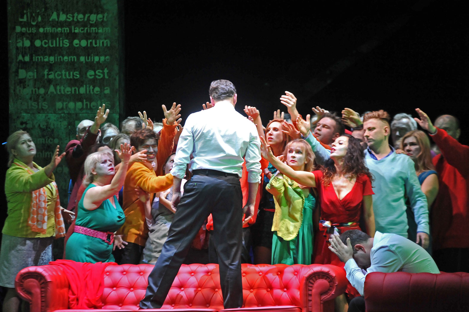 To już trzecia, po hiszpańskiej i brazylijskiej, inscenizacja „Króla Rogera” przez Michała Znanieckiego. I choć pojedyncze elementy pozostały podobne, zmieniła się wymowa, jak również cały finał. Akcja rozpoczyna się tak samo, w królewskiej siedzibie, nie świątyni, a chór początkowy to chór poddanych, który donosi Rogerowi (pijącemu poranną herbatkę z Roksaną i nieistniejącym w libretcie synkiem) o Pasterzu-burzycielu. Ostatni akt zaś, który w teatrze w Bilbao rozgrywał się w klubie gejowskim, tu ma miejsce na ruinach dawnego pałacu – minęło 30 lat, król jest stary i schorowany, Roksana to również sterana życiem hipiska, a Pasterz odzywa się już tylko jako głos wewnętrzny. Co się przez te lata stało? Można się tylko domyślać.