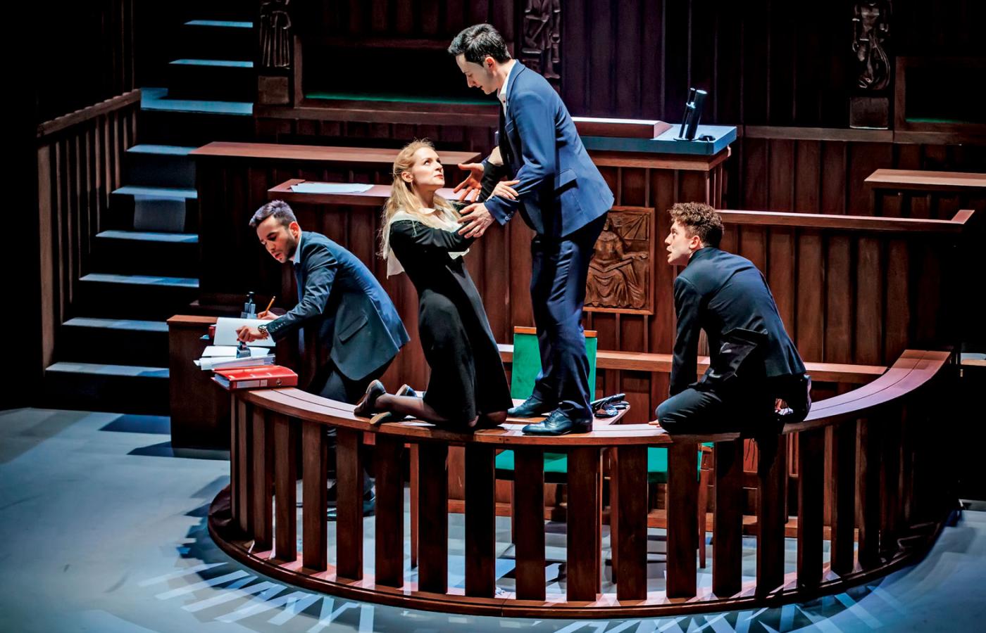 Monumentalna scenografia ustawia odbiór spektaklu – jesteśmy w Sejmie, polskim. Całą scenę zajmuje świetnie oddany przez litewskiego scenografa Gintarasa Makarevičiusa szczyt sali sejmowej: miejsca dla marszałka i jego zastępców, mównica i schody prowadzące do znajdujących się na dole ław zajmowanych przez dwa główne stronnictwa. Szekspirowski Wiedeń staje się współczesną Warszawą, a pełna świetnych obserwacji i złożonych portretów psychologicznych sztuka o ponadczasowym cynizmie władców, hipokryzji moralizatorów i okrucieństwie ukrytym pod maską łaski staje się satyrą na rządzoną przez PiS Polskę. Trudno się reżyserowi dziwić, skoro nawet wysoka pozycja polityczna księży, opisana przez Shakespeare’a, w wielu krajach dziś abstrakcyjna, ma swoje odzwierciedlenie w obecnej polskiej polityce.