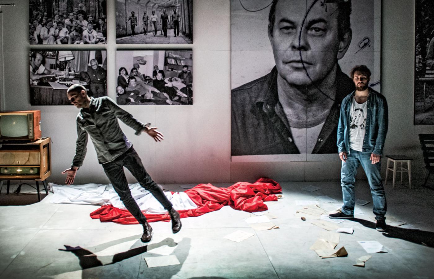 Na przepełnionej widowni premierowego przedstawienia „Kuronia” można było zobaczyć m.in. legendy opozycji, przyjaciół głównego bohatera, a pomiędzy nimi trójkę aktorów kłócących się o ocenę ich działalności i spuścizny. O Kuronia, o plan Balcerowicza i porzuconych pracowników zlikwidowanych pegeerów, o seksizm opozycjonistów i generalnie – czy można było inaczej. W spektaklu czas przeszły stale miesza się z teraźniejszym, a w końcówce także z receptami na przyszłość. Wyciągnięcie z szafy z etykietą „Powojenna historia Polski” figury Kuronia (grany przez młodziutkiego Oskara Stoczyńskiego, bardziej niż Chrystusa z pasji przypomina ludowego, dobrotliwego świątka) skutkuje eksplozją całej zawartości. Mamy więc proces, podczas którego prokurator i obrońca przerzucają się faktami z biografii bohatera. Jesteśmy świadkami rujnujących życie rodziny Kuroniów rewizji i aresztowań. Słuchamy monologów narcystyczno-sadystycznej Ojczyzny, dla której poświęcił życie, a także monologu zmarłej żony Gai z niezrealizowaną wizją Polski rządzonej na równi przez kobiety i mężczyzn. Oglądamy też ewolucję autora książki o Kuroniu, który pod wpływem bohatera porzuca negatywny obraz rodaków i zaczyna wierzyć w dialog, szansę budowania mostów i kompromisu. I właśnie to dziedzictwo Kuronia ma być największym zagrożeniem dla dzisiejszej pisowskiej władzy i nadzieją na lepszą przyszłość. Dużo tego jak na jeden – ważny i potrzebny – spektakl. Za dużo.