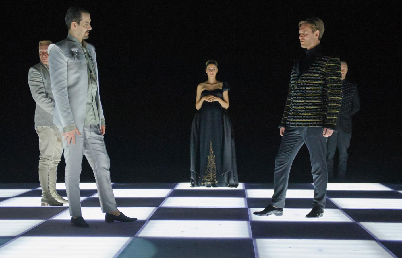 Tak chyba mogłaby wyglądać wizualizacja marzeń ministra kultury o teatrze narodowym, a także zwycięskiego programu w konkursie na dyrektora Starego Teatru w Krakowie – rodzima podróbka teatru brytyjskiego, którego oryginał możemy oglądać w ramach cyklu kinowych retransmisji z londyńskich scen. Wierność tekstowi (w niestety pozbawionym wdzięku i finezji tłumaczeniu Piotra Kamińskiego), podawanemu w kilometrowych ciągach w recytatorski sposób, kostiumy i monumentalna scenografia (szachownica) sugerujące uniwersalny i głęboki sens. Do tego temat – rozkręcająca się paranoja króla, która każe mu wszędzie widzieć intrygi i zdradę, niszcząca jego rodzinę, dwór, a w końcu także jego samego. Kto chce w tym zobaczyć aluzję do polskiej rzeczywistości – zobaczy, ale na odpowiedzialność własną, a nie twórców. Hycnar zamiast na psychologii bohaterów, pracy z aktorem czy głębszym wejściu w wątek polityczny, skupił się na warstwie inscenizacyjnej. Scena jeździ to w dół, to w górę, działa projektor i dymownice, projekcja morskich fal na unoszący się nad sceną dym naprawdę robi wrażenie. Jednak poruszający i ważny spektakl z tego nie powstaje.