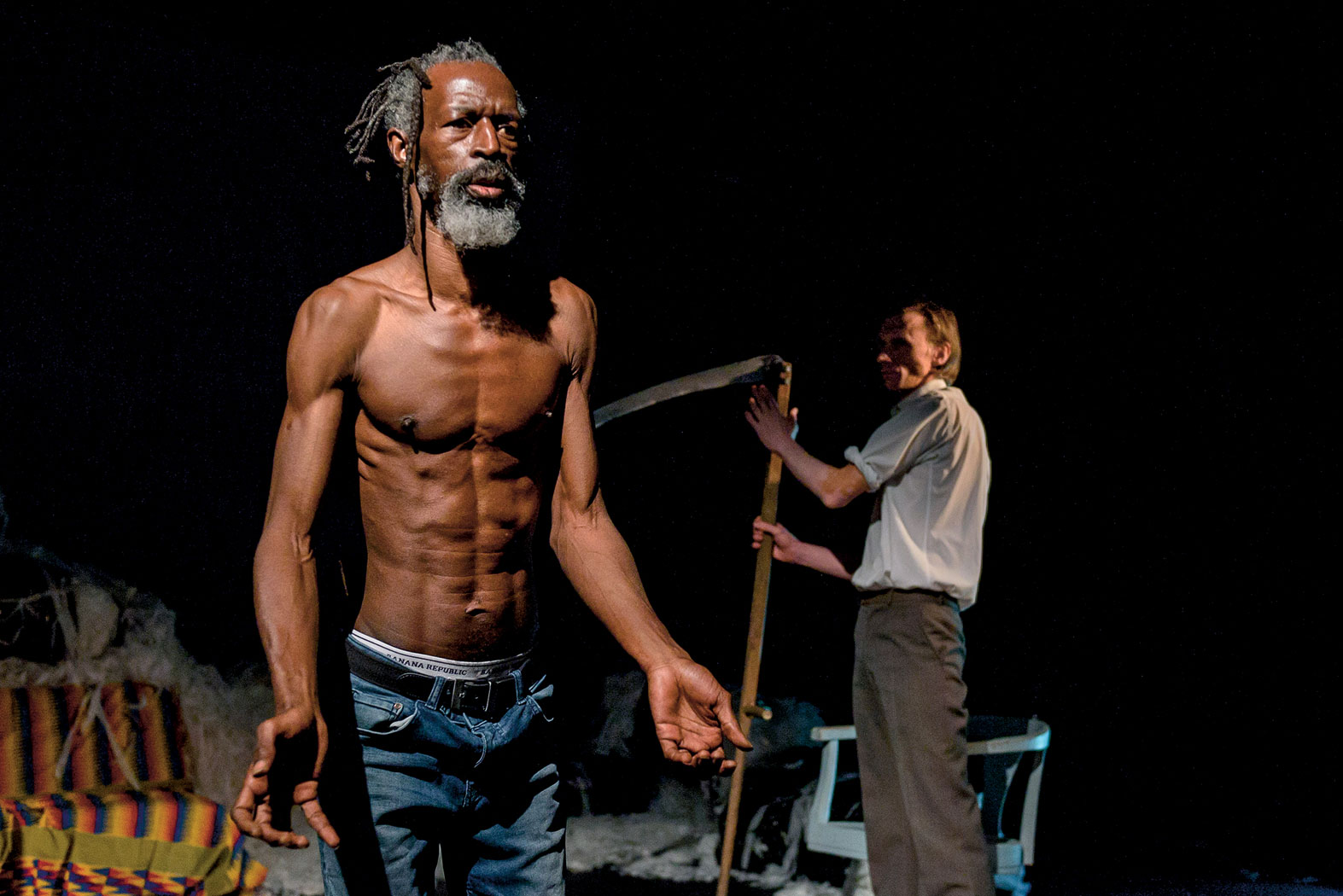 Scena jest mała i zawalona workami ze śmieciami. Świat zmierza ku globalnej katastrofie ekologicznej, pod przyjemnie brzmiącym hasłem „rozwój” kryła się chciwość i zachłanność, efekty widać, a coraz częściej też czuć. Paweł Łysak próbuje połączyć perspektywę globalną z lokalnymi i publicystykę z tonem osobistym. Klamrą jest postać Fausta (wąsaty Kazimierz Wysota), symbol męskiego ego w zachodnioeuropejskim wydaniu. W finale zostanie – przez kobietę (Anna Ilczuk) – ubrany w pidżamę i odesłany do łóżka, jego czas powinien minąć, bo inaczej grozi nam katastrofa. Trochę to przekonywanie przekonanych – trudno o bardziej lewicową widownię niż ta z Powszechnego. Ale są też plusy, konkretnie trzy. To Andrzej Kłak opowiadający o ojcu Pawła Łysaka, Janie, Artem Manuilow – o swoim, Aleksandrze, i Mamadou Góo Bâ – o Dembie.