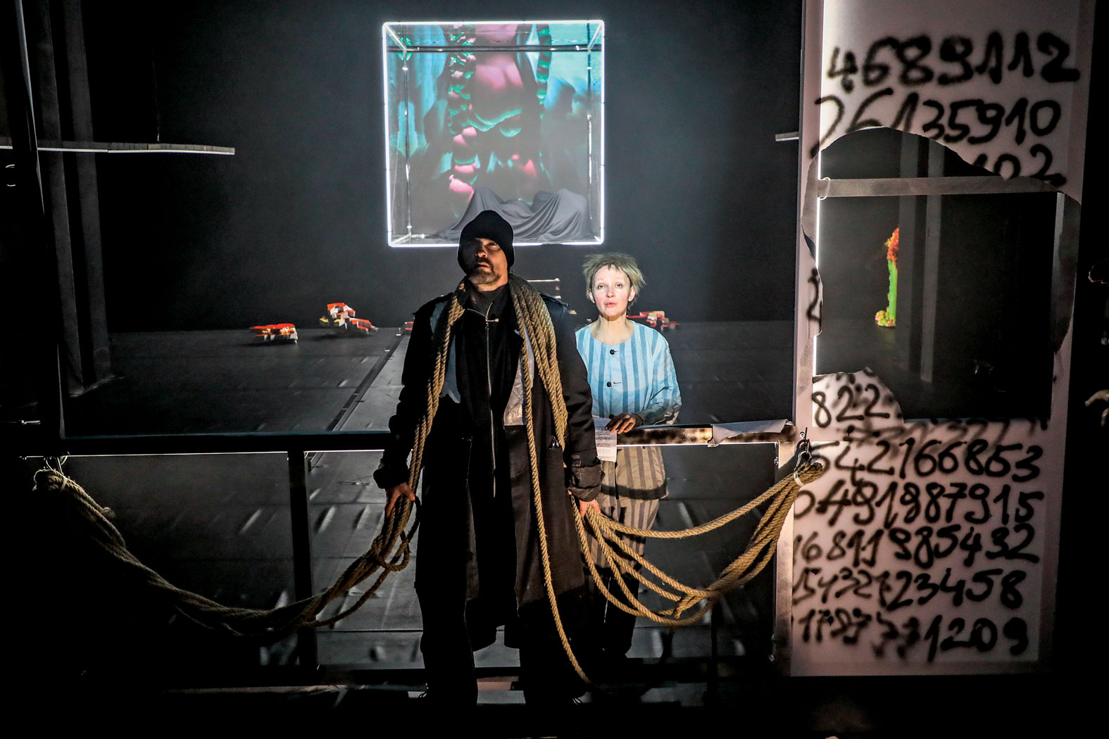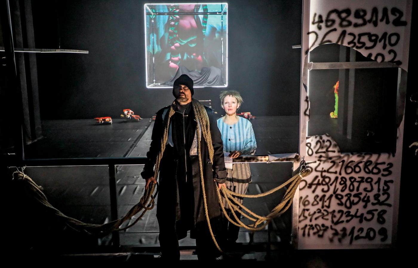 Zainteresowanie kwestiami uniwersalnymi i ostatecznymi, fragmentaryczność, rozmowa z modernistyczną awangardą (scenografia jest inspirowana „Czarnym kwadratem na białym tle” Kazimierza Malewicza) i mitem jako podstawą zachodniej kultury zbliża nowe dzieło Garbaczewskiego do teatru zmarłego 14 lat temu Jerzego Grzegorzewskiego. W centrum – także dosłownie – jest schodzący do Hadesu Orfeusz (Krzysztof Zawadzki) i jego ukochana Eurydyka (Olga Belinskaia oraz Lady Makbet z petersburskiego „Makbeta” Garbaczewskiego). Jest w – lśniącym – pasiaku, bosa, czasem żywa, czasem martwa. Orfeusz z wysiłkiem ciągnie w stronę publiczności zamocowane na wysięgnikach „czarne tło” od „białego kwadratu” (który jest płótnem dla projekcji wideo, a na koniec piecem krematoryjnym albo pamięci), a wraz z nim Eurydykę. Jakby zoomował, przybliżał ją, odbierał ostatecznej śmierci – zapomnieniu. Cała instalacja przywołuje też skojarzenie z ramą wagonu wciąganego na rampę w Auschwitz. Z prawej jej strony stoi kolorowe drzewo z rękami zamiast gałęzi i kobiecymi piersiami na pniu, z lewej pianino. Z natłoku słów wybija się „Orfeusz i Eurydyka” Czesława Miłosza i kolejne, poruszające splecionymi obrazami śmierci i miłości wiersze Bolesława Leśmiana. Są też dymy i lasery, włochaty czerw i Myszka Miki, na projekcji wideo pojawia się Krishnamurti...