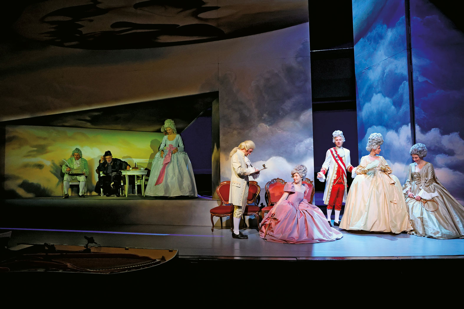 Księgi Jakubowe albo Wielka podróż przez siedem granic, pięć języków i trzy duże religie, nie licząc tych małych”, niemal tysiącstronicowe, bogate w wątki i perspektywy opus magnum noblistki może być materiałem na bardzo różne spektakle. Ewelina Marciniak sięgała po powieść dwukrotnie i za pierwszym razem (warszawski Teatr Powszechny, 2016 r.) wyszła jej opowieść o doświadczeniu mistycznym, a za drugim (hamburski Thalia Theater, 2021 r.) rolę główną grały tematy uchodźców, kobiet i tolerancji. Michał Zadara w historii sekty Jankiela Lejbowicza vel Jakuba Franka, przemierzającej XVIII-wieczną Polskę, część Azji i Europy, od błota Podola po dwór w Niemczech, zobaczył opowieść o poszukiwaniu tyleż wolności i lepszego świata, co możliwości awansu społecznego w silnie zhierarchizowanym, feudalnym i opartym na przemocy świecie, w którym każdy broni swojej pozycji i bezwzględnie wykorzystuje przysługującą mu z jej racji władzę.