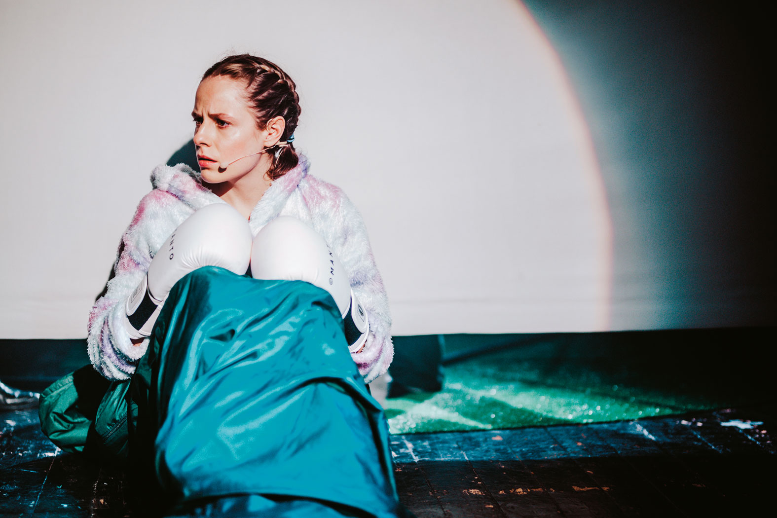 M. (Maja Pankiewicz) jest dzieckiem: dorośli nie traktują jej jak partnerki, najważniejsze sprawy trzymają w sekrecie albo ignorują ich istnienie. Tymczasem świat, a razem z nim młoda M., pogrąża się w ciemności. Obiektywnej, bo tematem spektaklu Studia jest katastrofa klimatyczna, i subiektywnej, bo jest nim też poczucie bezsilności i tłumiony gniew. Jednak dzięki pomocy przyjaciół w krytycznej chwili M. stanie do walki o przyszłość świata i swoją – a ta walka, co interesujące, nie polega na okładaniu się, ale na zmianie myślenia i nawyków. „Wyspa Jadłonomia” jest bowiem inspirowana klasyką dziecięcą, z nieśmiertelną „Alicją w Krainie Czarów” i genialnymi animacjami Hayao Miyazakiego, ale przede wszystkim książkami Marty Dymek, propagującymi zdrową dla człowieka i planety roślinną kuchnię.