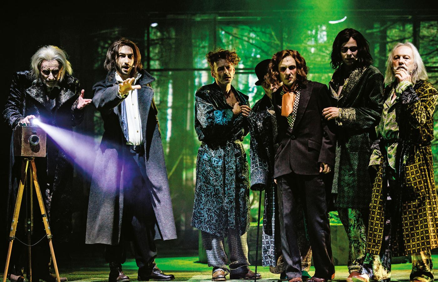 Twórca pierwszej teatralnej adaptacji najnowszej powieści noblistki, dyrektor Teatru Śląskiego Robert Talarczyk, podążył za podtytułem książki: „Horror przyrodoleczniczy”. Osadzony w początkach XX w. w dolnośląskim uzdrowisku Görbersdorf (dziś Sokołowsko), spektakl przywołuje estetykę epoki ekspresjonizmu. Tokarczuk w „Empuzjonie” dialoguje z „Czarodziejską górą” Manna, w centrum stawia leczących się na gruźlicę, rozdyskutowanych mężczyzn i przeczucie końca znanego im świata. Tylko że w tej wersji zbliżająca się wielka wojna, symbolizowana przez nagrobki „mężczyzn w wieku poborowym”, jest metaforą zmian obyczajowych – stopniowego końca patriarchatu. Oparty na wymuszonych podziałach i hierarchiach świat drży w posadach, a mężczyźni narastający strach zapijają nalewką na grzybach Schwärmerei.
