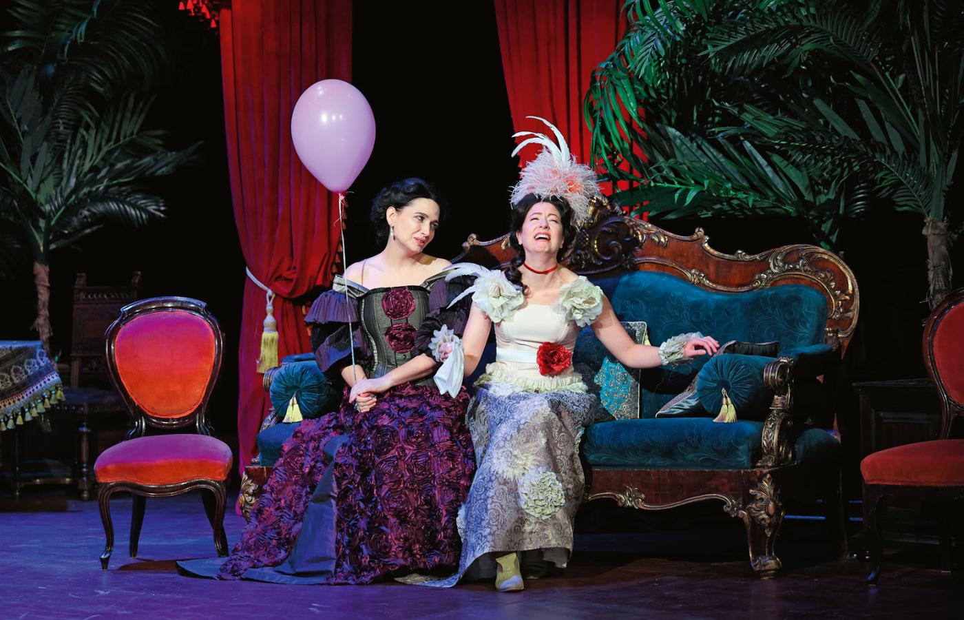Przez scenę symbolizującą XIX-wieczny mieszczański salon przewija się ponad 20 bohaterów, w większości rysowanych bardzo grubą kreską.