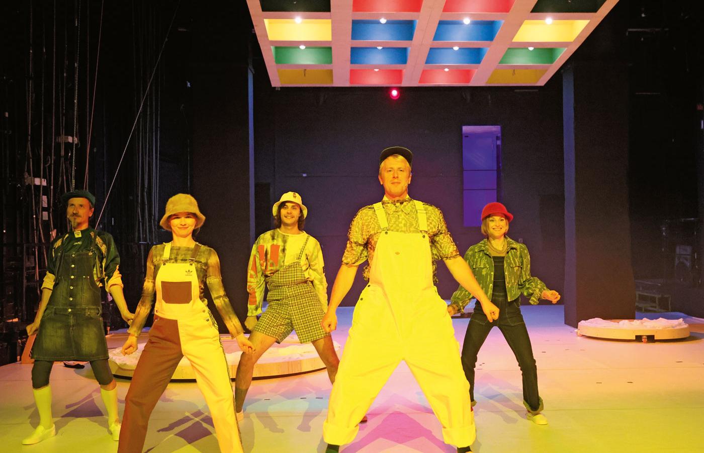 Zaczyna się zaskakująco i obiecująco. Aktorzy po kolei wychodzą na scenę, by poprosić widzów o „pięć minutek” cierpliwości, bo kolegę z obsady kolejne duble zatrzymały na planie serialu i się spóźnia. Kto nie gonił w piętkę w pracy, próbując wykonać wszystkie zadania, i nie wymyślał wymówek, żeby usprawiedliwić nienadążanie za dedlajnami, niech pierwszy rzuci biletem! Gdy jednak spektakl w końcu ruszy, szybko wpadnie, jak wielu pracowników, w rutynę, w kolejnych scenach odhaczając kolejne elementy kapitalistycznej pracy i „kultury zapierdolu”. Sześcioro aktorów wciela się w różne typy korpopracowników, a ich pracę symbolizują – pomysłowo – namiociki naciągane za pomocą sznurów. AK