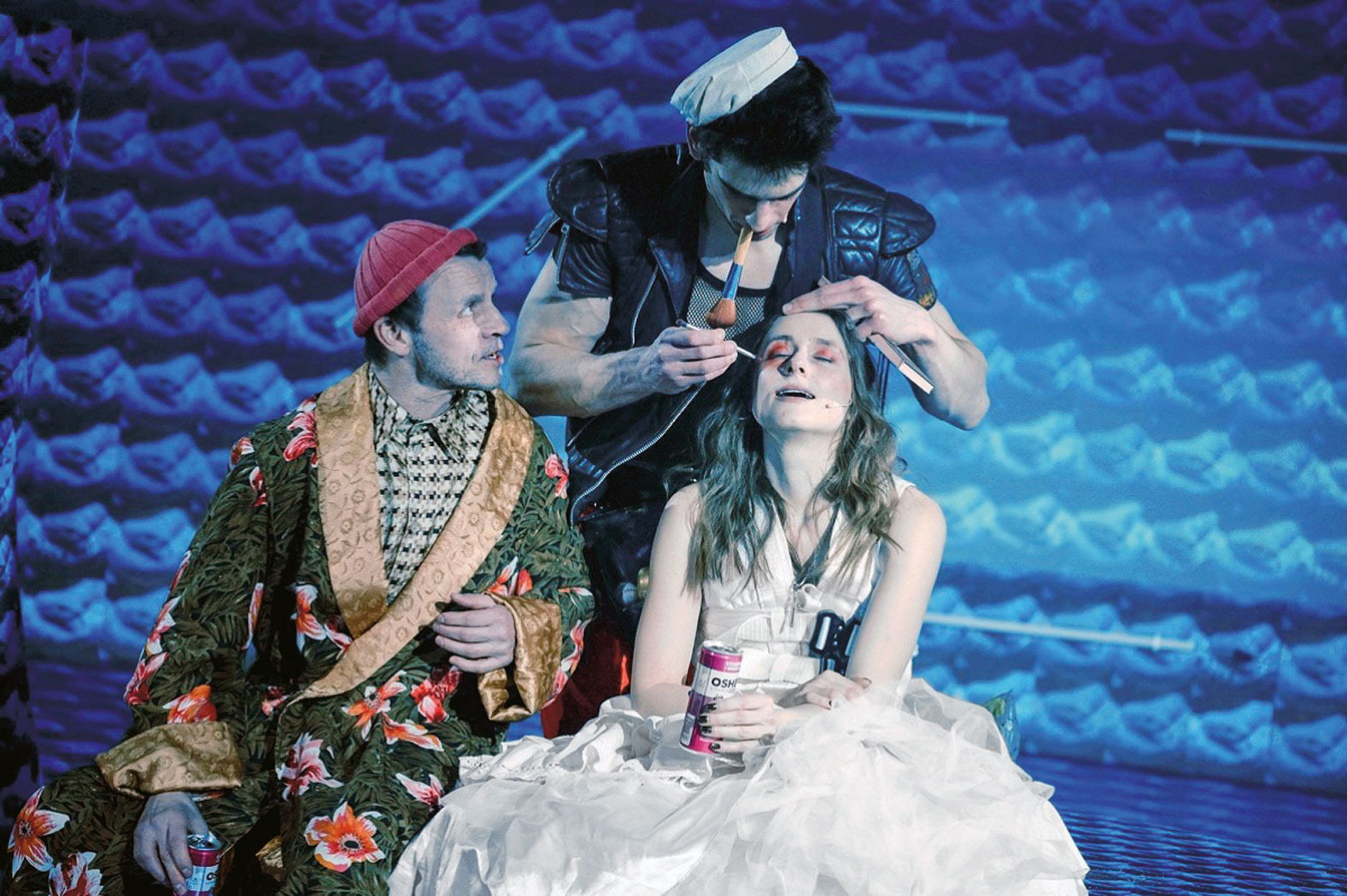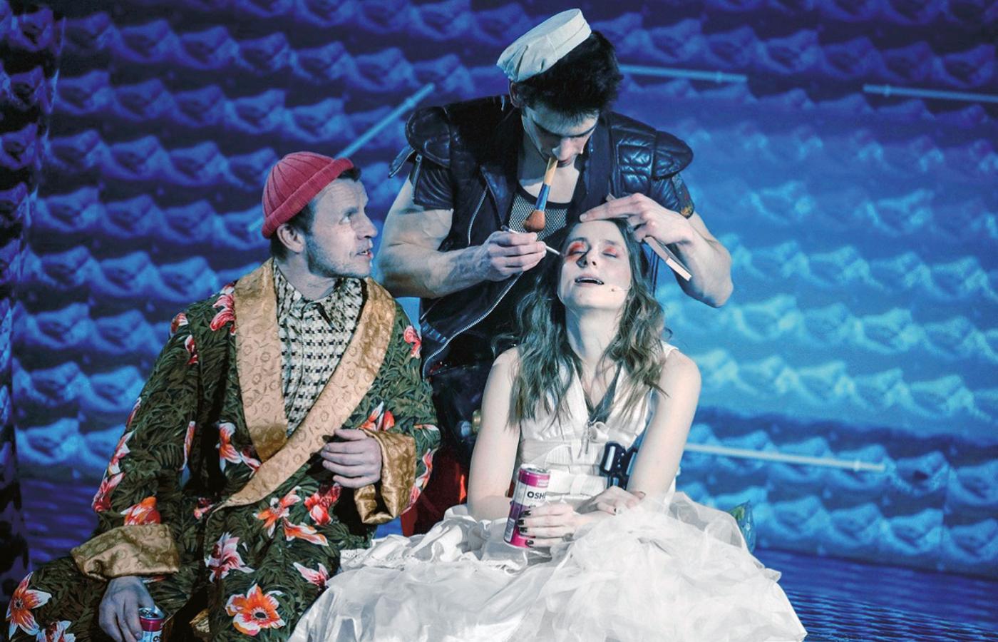 W dobrze przyjętym debiucie powieściowym sprzed czterech lat Małgorzata Żarów z poczuciem humoru i dystansem bawi się konwencjami literackimi i pokazuje erotykę z kobiecej perspektywy. Główna bohaterka, znana pod pseudonimem Violet Love, którego używa jako camgirl (internetowa seksworkerka), przemierza zasnutą dymem po tajemniczym wybuchu Warszawę w podartej sukni ślubnej z odpryskami złotej farby, spotykając po drodze rozmaite postacie. Jej spojrzenie na swoją pracę, na seks i na rzeczywistość bywa przewrotne, dużo tu sarkazmu, ale też (profesjonalnego) zrozumienia dla ludzkich pragnień, słabości, marzeń. Inteligentne poczucie humoru bohaterki, granej z charyzmą przez Helenę Urbańską, jest też jasnym punktem pozbawionego innych walorów spektaklu Jana Jelińskiego.