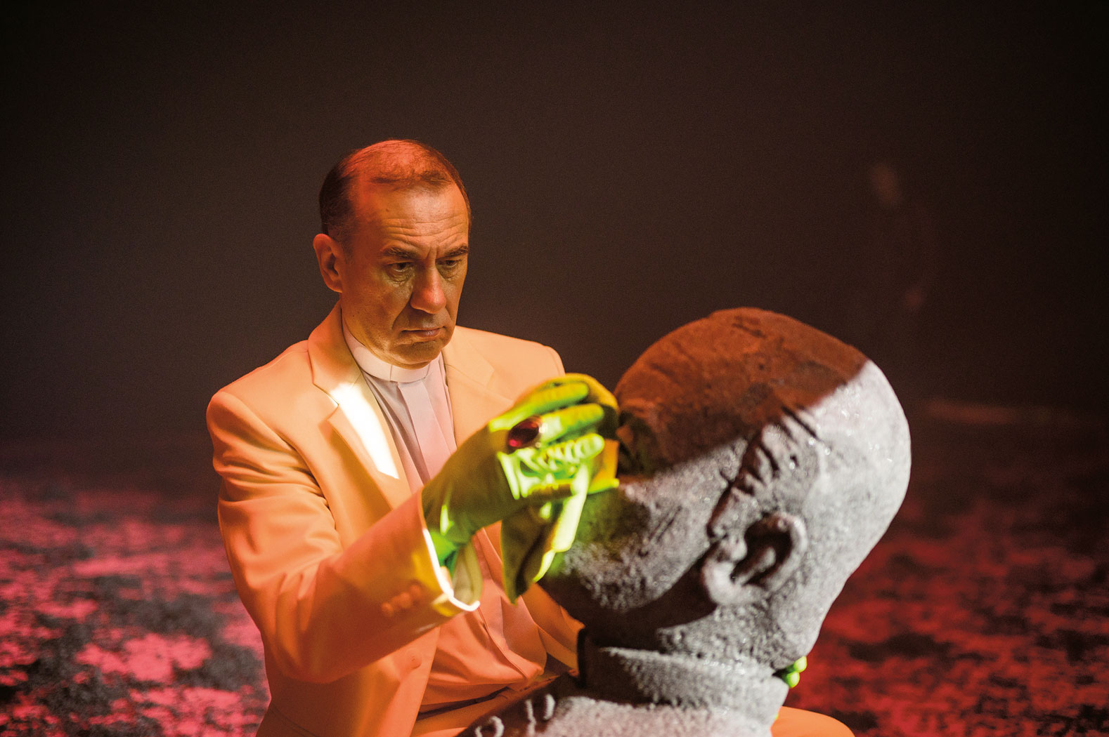 Z pomysłem realizacji spektaklu o księdzu Henryku Jankowskim – zmarłym w 2010 r. kapelanie Solidarności, oskarżanym o pedofilię i donosicielstwo, antysemicie, sybarycie, którego gdański pomnik został obalony i rozebrany w 2019 r. – wyszedł ponoć dyrektor Teatru Telewizji Michał Kotański. Ale główną postacią stworzonego przez Michała Kmiecika i Marcina Libera „Prałata” nie jest sam Jankowski (Rafał Dziwisz), a tematem nie są jego grzechy. Prałat jest pretekstem, bohaterów i poruszanych spraw jest wiele, perspektywy i tonacja zmieniają się ze sceny na scenę, a tempo jest teledyskowe, bo spektakl trwa zaledwie 50 minut. Pierwsze skrzypce gra w nim Diabeł, Robert Diabeł (Juliusz Chrząstowski w białym garniturze i z pentagramem na łysej głowie). Pojawia się, bo nowy dyrektor Teatru Telewizji (grany przez Andrzeja Kłaka), zamawiając sztukę o Kościele, złamał pakt, wedle którego TVP występnych księży nie tyka, a w zamian Diabeł po cichu smaży ich w piekle.
