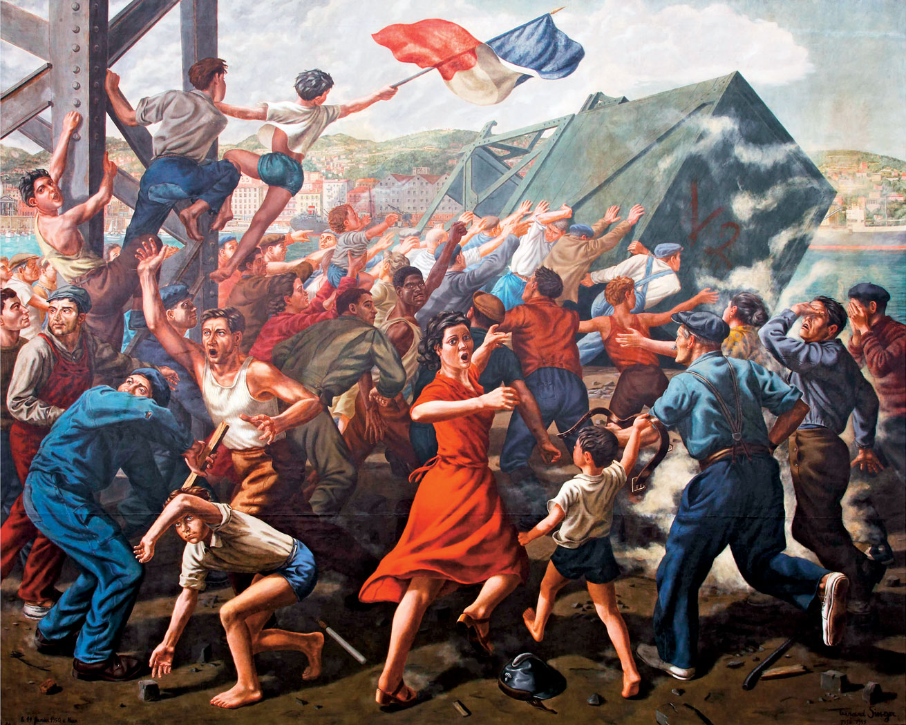 Pretekstem i osią całej wystawy jest monumentalna (3,5x4,5 m) praca Francuza Gérarda Singera „14 lutego w Nicei”, namalowana w 1950 r. przez 21-letniego zaledwie artystę, a przedstawiająca antywojenny bunt dokerów. We Francji zakazano jej pokazywania, ale za żelazną kurtyną swym antykapitalistycznym przesłaniem oczywiście wzbudziła zachwyt. Zaproszono więc z wielkimi honorami Singera do Polski, a dzieło prezentowano najpierw w stołecznej Zachęcie, a następnie w Muzeum Narodowym w Szczecinie, gdzie było największą atrakcją do 1956 r., po czym… przepadło w magazynach na kolejne sześć dekad. Wydobywając je z otchłani niepamięci, autorzy wystawy postanowili przy okazji przypomnieć dzieła innych twórców polskich i zachodnich, którzy swego czasu doświadczyli „heglowskiego ukąszenia” i zajęło im trochę czasu, by się z niego wyleczyć. Są wśród nich naprawdę świetni artyści, jak Renato Guttuso, Xawery Dunikowski, Roman Cieślewicz, Wojciech Fangor czy Wojciech Zamecznik. Są i tacy, których historia sztuki kompletnie wymazała z pamięci. Mamy tu wizualne opowieści o nowym wspaniałym świecie, nowym początku, nowym człowieku i przewidywalny zestaw motywów: manifestacje, proletariat, portrety wielkich przywódców, żniwa i budowy, przyjaciele komuniści, odrażający kapitaliści itd. Opowieść o tym, jak wyglądała i jak się skończyła „dobra zmiana” sprzed 70 lat, może i jest nienowa, może oczywista, ale nieodmiennie – ku przestrodze – warta przypominania.