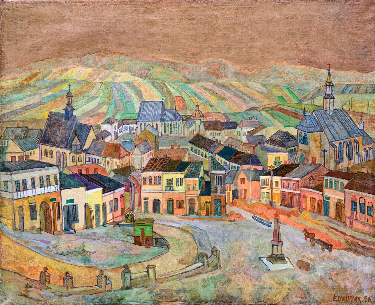 Łatwo policzyć, że pokazano nieco ponad 1 proc. wszystkich prac, które wyszły spod pędzla Dwurnika. Ale i to wystarczy, by się dowiedzieć lub upewnić, czemu twórca zasługuje na uznanie. Tym bardziej że zestaw prezentuje – choć oczywiście w telegraficznym skrócie – całą jego drogę artystyczną. Od wczesnych, ale już zdradzających charakterystyczny „prymitywizujący” styl, obrazów z połowy lat 60. XX w., po prace najnowsze. Są obrazy ze słynnych cykli „Sportowcy” (nazwa od papierosów Sport) i „Błękitne miasta”, choć brakuje – i wielka szkoda – cyklu „Robotnicy”. Jest też sporo abstrakcji, która szczególnie wciągnęła artystę w ostatnich dwóch dekadach. W sumie subiektywny i ostry jak brzytwa obraz społeczeństwa polskiego. Śmieszny, smutny, prawdziwy.
