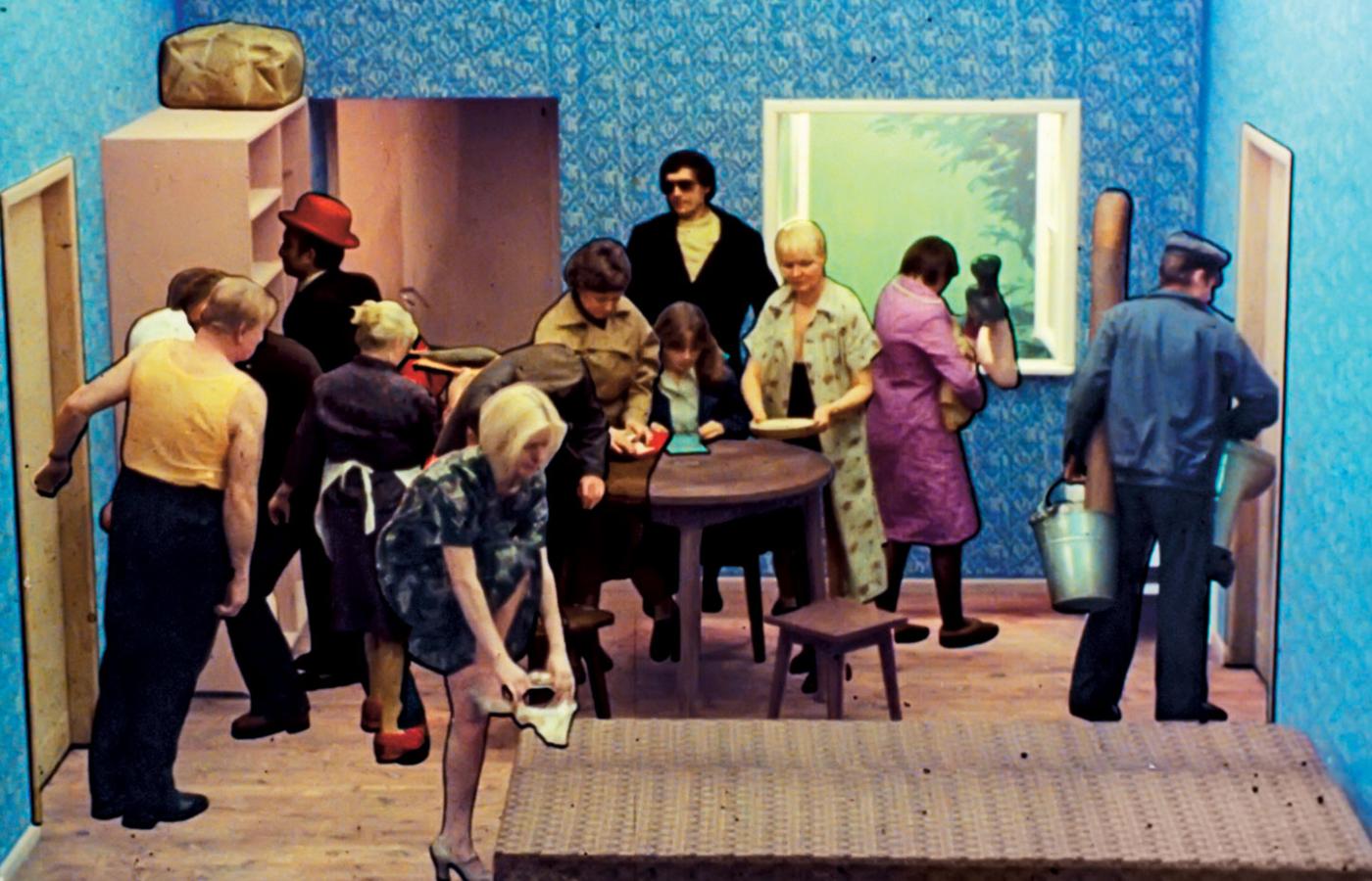 Tytuł nawiązuje do słynnego (Oscar!) animowanego filmu Zbigniewa Rybczyńskiego, w którym tłum postaci bezkolizyjnie wpasowuje się w przestrzeń małego pokoju. To była trafna alegoria przeludnionych rodzimych mieszkań w czasach PRL-u, gdy lokal 40-metrowy uchodził już za bardzo okazały. Twórcy wystawy postanowili powrócić do owych klimatów „ciasnoty” wystawą po trosze analityczną, sentymentalną i refleksyjną. Z dominującymi dwoma elementami: wspomnianym filmem oraz gigantyczną, jakby zaprzeczającą swej tradycyjnej funkcji, meblościanką. To ów mebel, wymyślony wprawdzie w USA, lecz święcący triumfy w Polsce, kuratorzy uznali za symbol „radzenia sobie” z deficytem powierzchni i przestrzeni. I słusznie, bo to on organizował nam życie domowe przez kilka dekad. Szkoda tylko, że nie zdecydowano się na szerszy kontekst, który by przypominał także inne aspekty ówczesnego oswajania ciasnoty: w fiacie 126p (ileż tam się dawało upchnąć!), na pracowniczych działkach z ich tycimi domkami, w domkach ze sklejki ustawianych w ośrodkach wczasowych itd. A do tego meble-transformersy (kanapy i fotele zmieniające się w łóżka, ławy – w wysokie stoły), pawlacze, czy anektowanie przestrzeni blokowych korytarzy i adaptowanie loggi na część mieszkania. „Polak potrafi” łamane przez „potrzeba matką wynalazku”. Młodych może i zachwyci opowieść o meblościance, ale starsi wiedzą, że było jeszcze ciekawiej.
