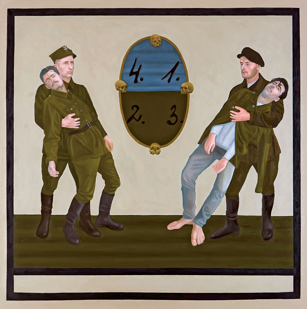 Malarstwo Czwartosa przypomina mi niekiedy słynny wehikuł Pana Samochodzika: pod staroświecką karoserią krył się sportowy silnik z ferrari. Nadwozie to w tym przypadku artystyczna forma. Widać w niej wyraźny wpływ mistrza i nauczyciela Jerzego Nowosielskiego, poetyckie echa wschodnich ikon, wyraźną fascynację dekoracyjnym barokowym konterfektem, odwołania do Andrzeja Wróblewskiego (szczególnie cyklu „Rozstrzelań”), ale i nawiązania do Pieta Mondriana czy Kazimierza Malewicza. Ograniczona paleta chłodnych barw, elegancja, hieratyczny, nieco rytualny, ale i podniosły sposób przedstawiania ludzkich sylwetek. I do tego wyraźna słabość do stosowania symboli, alegorii, zanurzonych gdzieś w historii tekstów kultury. I ową tradycyjną, świadomie przestylizowaną formę wykorzystuje artysta do opowieści o tematach niekiedy tak gorących jak ów silnik ferrari. Na przykład o kibicach piłkarskich. Zaś ostatnio, co szczególnie ciekawe, do pogłębionej malarskiej opowieści na temat żołnierzy wyklętych. To malarstwo mocne, ale całkowicie pozbawione zarówno publicystycznych tonów, jak i doraźnych kontekstów. To duża sztuka, by tak gorący społecznie temat ponownie sprowadzić na poziom pogłębionej refleksji i naturalnej wrażliwości. Malarstwo Czwartosa to kontemplacyjno-erudycyjna odpowiedź na czasy, w których obie te ludzkie właściwości pozostają w zaniku. Dlatego warta uwagi.