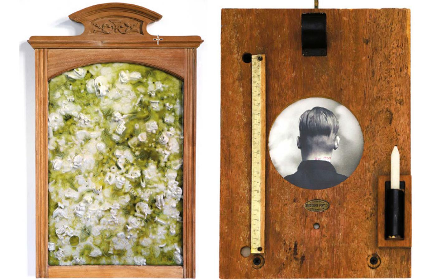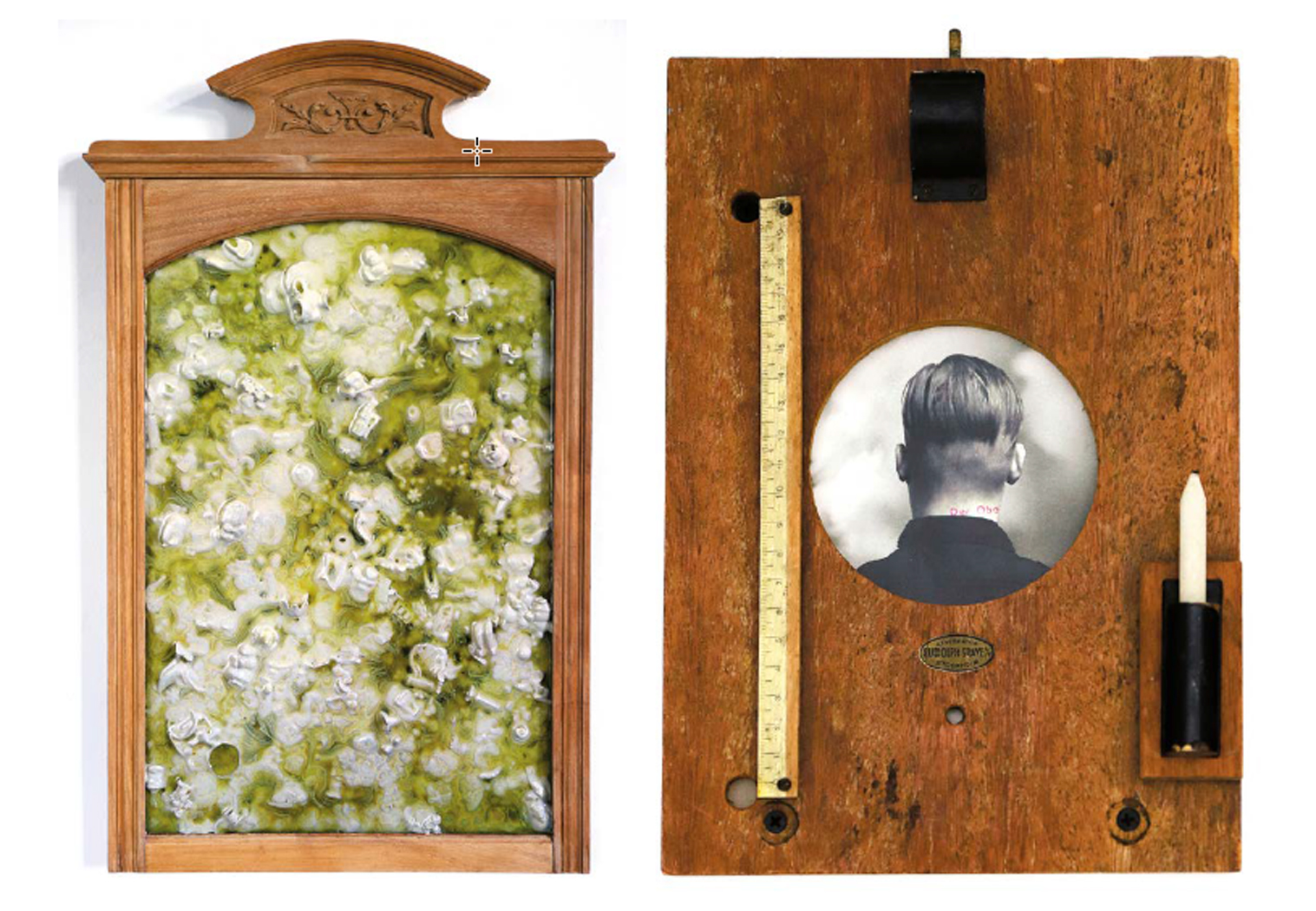 Zaproszonych na wystawę artystów sporo dzieli: wiek, środki artystycznego wyrazu, stosowany warsztat. Ale łączy coś ważnego: skłonność do grzebania w historycznych artefaktach. U Kuśmirowskiego to połączenie zbieractwa rodem z pchlich targów z doprowadzonym do perfekcji fałszowaniem przeszłości. Podrabianiem świadectw, biletów komunikacji, znaczków, zapałczanych etykiet, ale też całych fikcyjno-prawdziwych przestrzeni. U Antoniak zaś – korzystanie z banalnej popkulturowej papki ostatnich dekad, plastikowych drobiazgów ukrytych w kinder-niespodziankach i wypatrzonych na odpustowych straganach chińskich zabawek, które poddaje totalnej obróbce: stapia, łączy, zalewa żywicą, przemalowuje, odkształca.