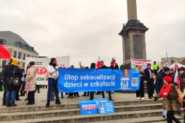 Najbardziej emocjonującym momentem protestu przeciwko nowemu przedmiotowi było pojawienie się Karola Nawrockiego. Ale im dłużej protest trwał, tym mroczniej robiło się na warszawskim pl. Zamkowym i stawało się oczywiste, że kwestia edukacji zdrowotnej to tylko pretekst dla fundamentalistycznych środowisk pokroju Ordo Iuris.