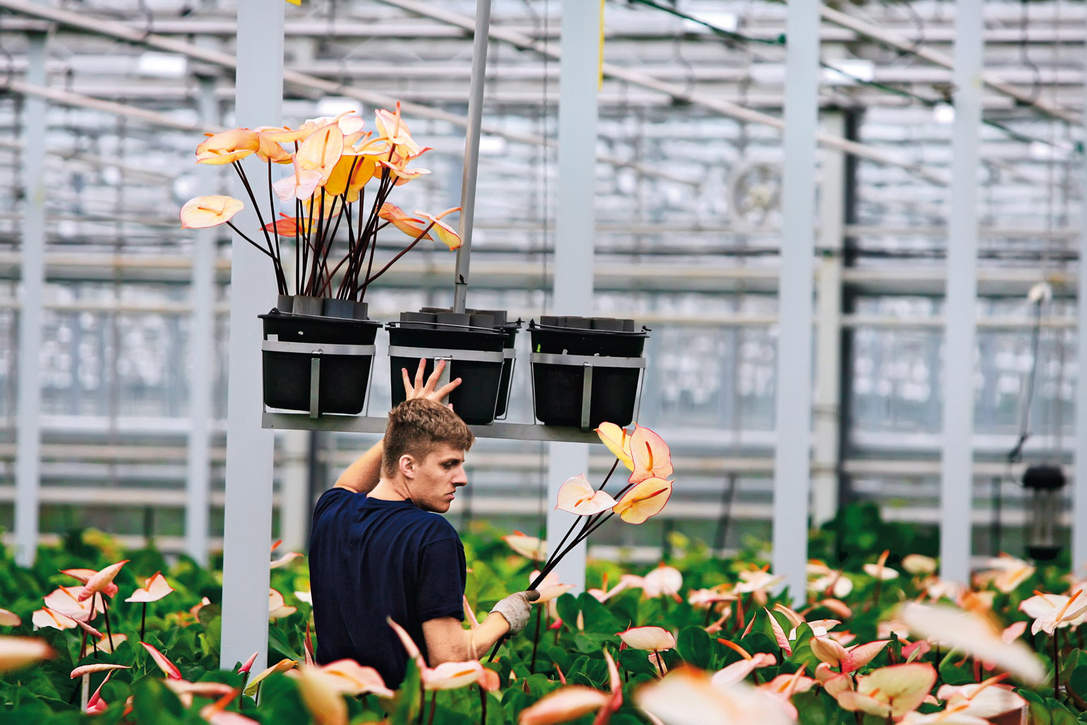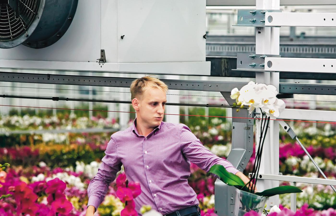 Szef oczekuje na storczyku, mówi pracownik i dosiada roweru, by pilotować na storczyk. Storczyk ma ponad sześć hektarów, zaczyna się od sali konferencyjnej: czekoladowe ściany, szarości i beże, groszkowe fotele, wysmakowany minimalizm, estetyka lat dwutysięcznych – jasno widać. Storczyk ruszył w 2006 r. Anturium jeszcze w latach 80., trzy hektary. A róża to lata 90., sześć hektarów.