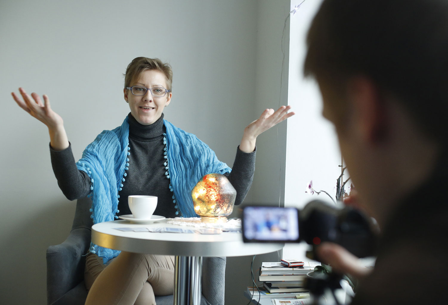 Agnieszka zrobiła sobie tymczasem biuro w kawiarni Juice przy pl. Wolności. Przy jej stoliku zmieniają się statystki do tego nowego teledysku – ręce są w ciągłym użytku, powtarzają gesty Agnieszki, która przetłumaczyła piosenkę z mówionego na migany. To zapamiętywanie gestów trwa już jakiś czas, więc Juice się nie dziwi – poza tym Agnieszka jest znana z internetu i było o niej w telewizji. Za udział w teledysku każda dziewczyna dostanie od Agnieszki dwie lekcje języka migowego, czyli jakieś 20 znaków migowych, czyli równowartość 50 zł.