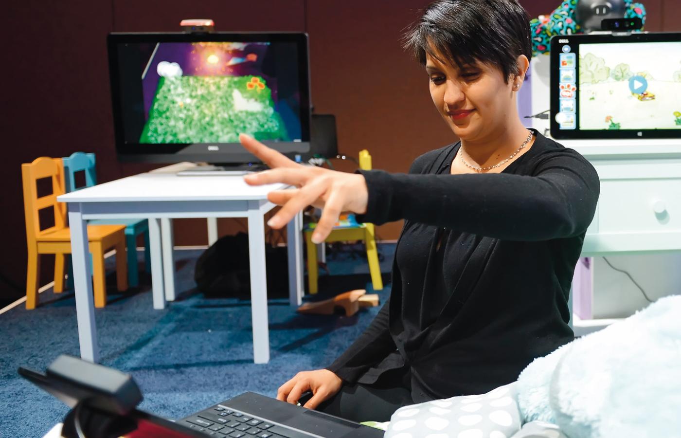 Na pokazie sterowanie dłonią odbywa się z zaskakującą precyzją. Pierwszy program – na zachętę – to prosta gra: muszę bezpiecznie przeprowadzić rysunkowych hoplitów przez pełną przeszkód i zagrożeń planszę.