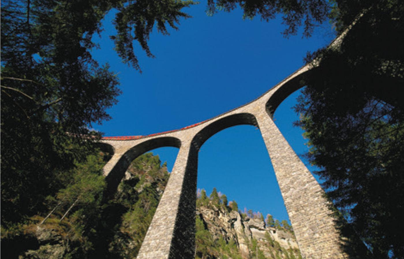 Wiadukt Landwasser o długości 142 m przebiega łukiem przez dziką dolinę o tej samej nazwie i od prawie 100 lat stanowi kunszt sztuki inżynierskiej. Najlepszy punkt widokowy znajduje się ponad wioską Filisur. Możemy również udać się na dwugodzinną wędrówkę do wiaduktu Wiesner i spojrzeć w dół - dolina znajdująca się 90 m niżej zachwyca pięknem.